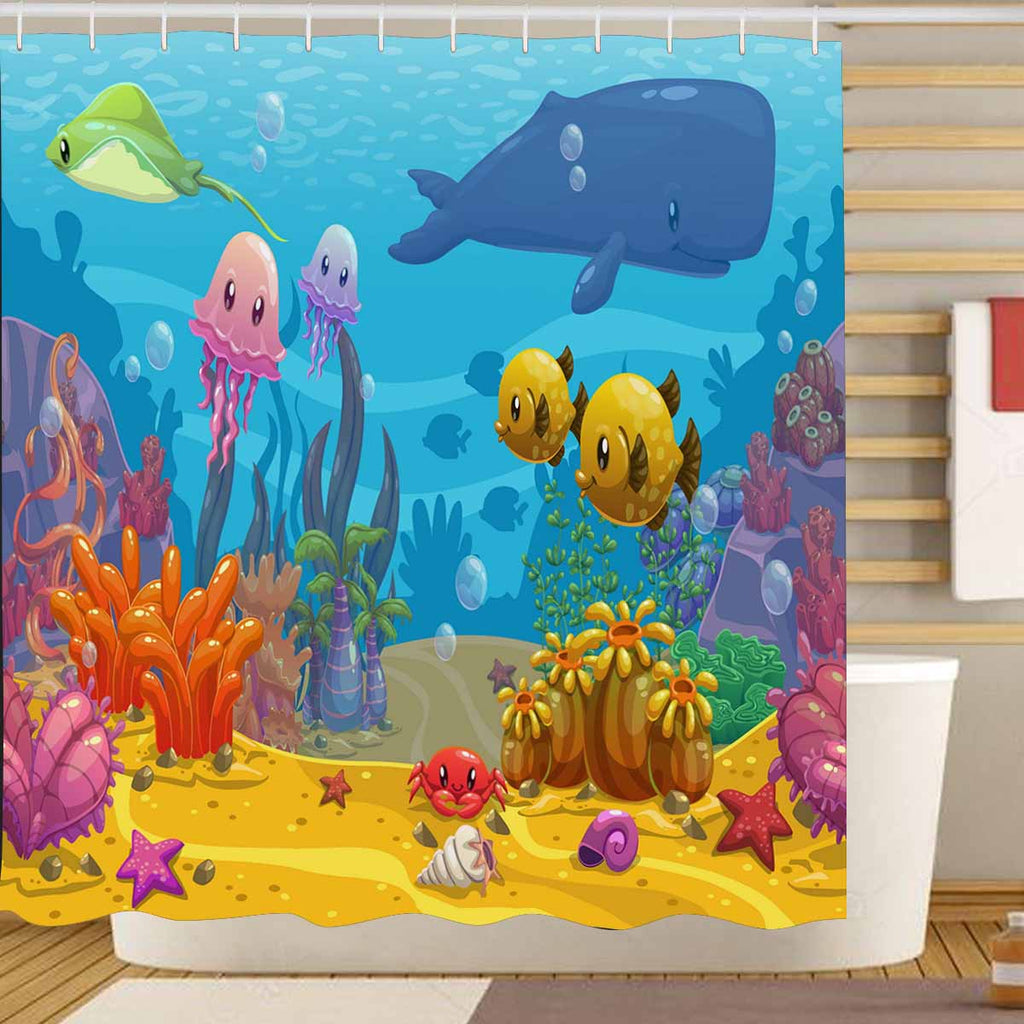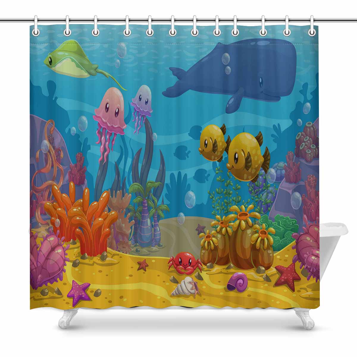 Seaworld themed print on shower curtains for bathroom, create a brilliant atmosphere in your bathroom, include a selection of different stylish and custom-made designs for your bath decoration.