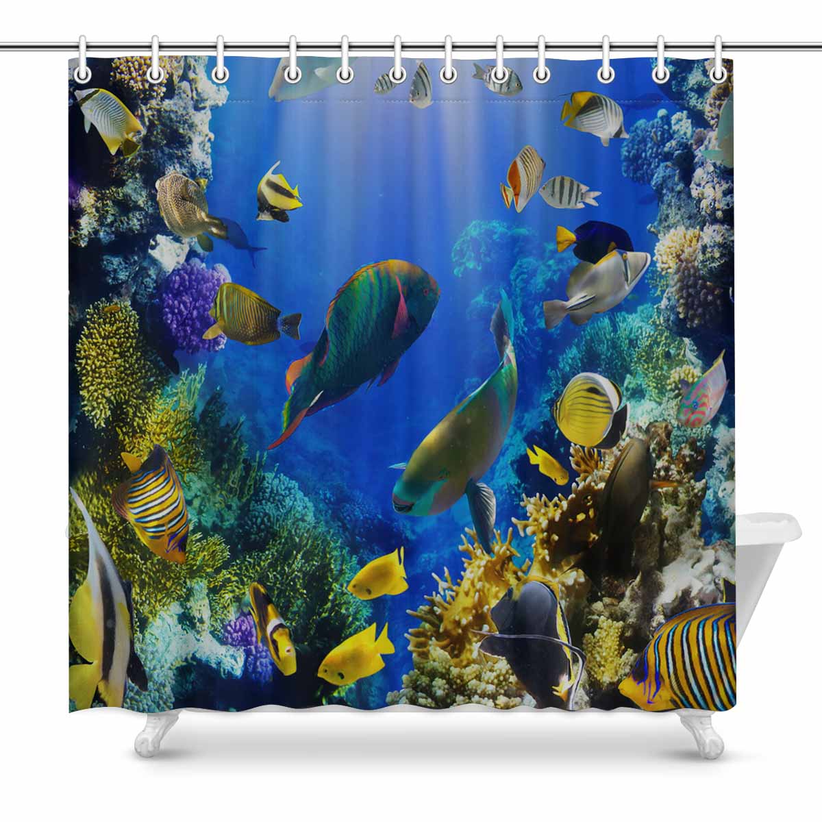 Seaworld themed print on shower curtains for bathroom, create a brilliant atmosphere in your bathroom, include a selection of different stylish and custom-made designs for your bath decoration.