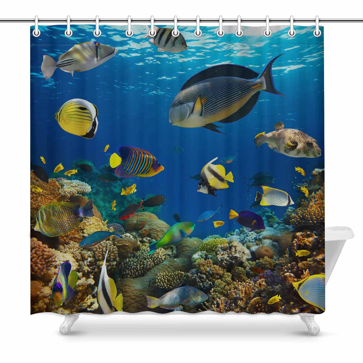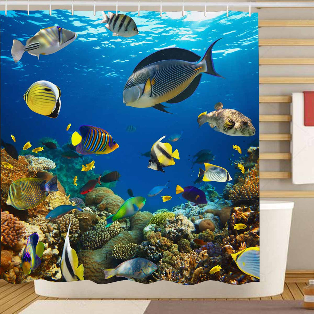 Seaworld themed print on shower curtains for bathroom, create a brilliant atmosphere in your bathroom, include a selection of different stylish and custom-made designs for your bath decoration.