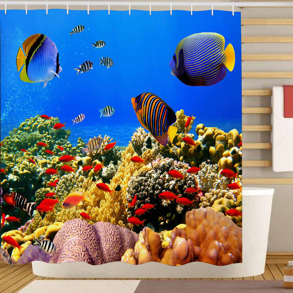 Seaworld themed print on shower curtains for bathroom, create a brilliant atmosphere in your bathroom, include a selection of different stylish and custom-made designs for your bath decoration.