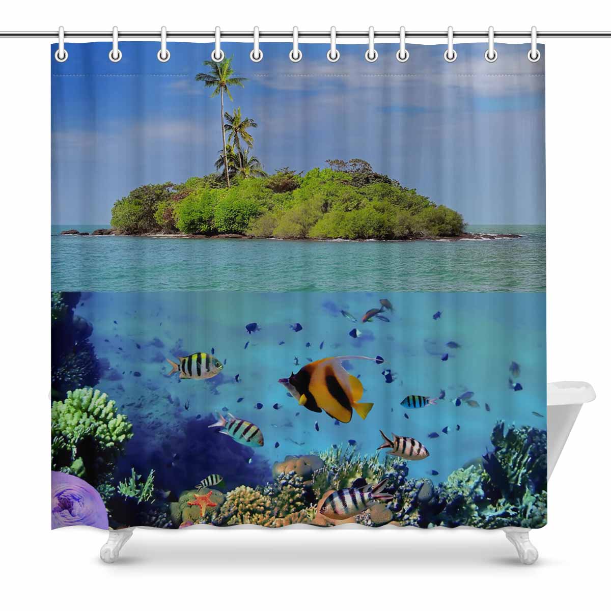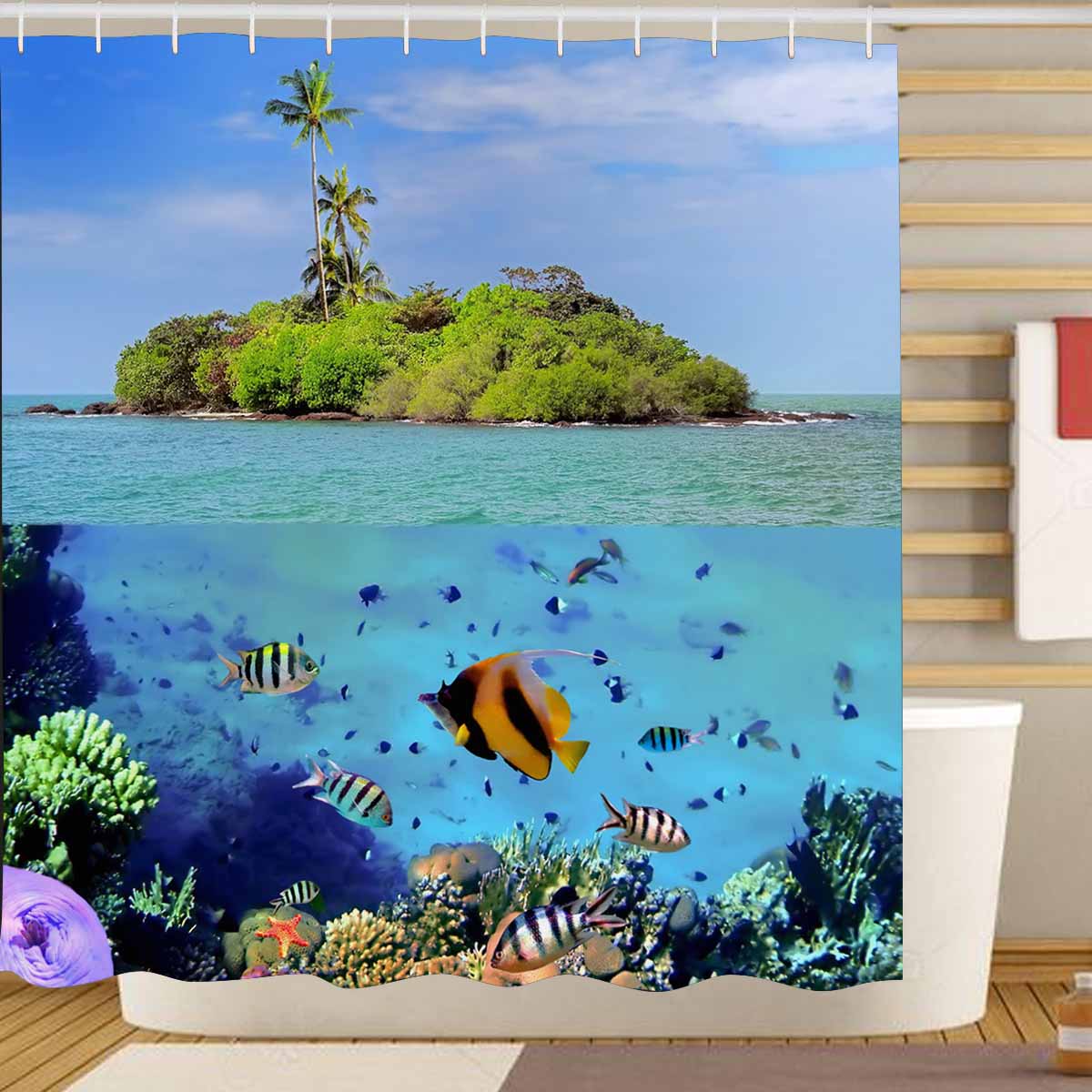 Seaworld themed print on shower curtains for bathroom, create a brilliant atmosphere in your bathroom, include a selection of different stylish and custom-made designs for your bath decoration.