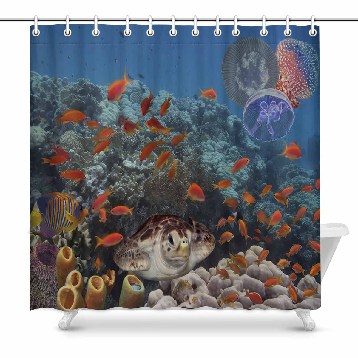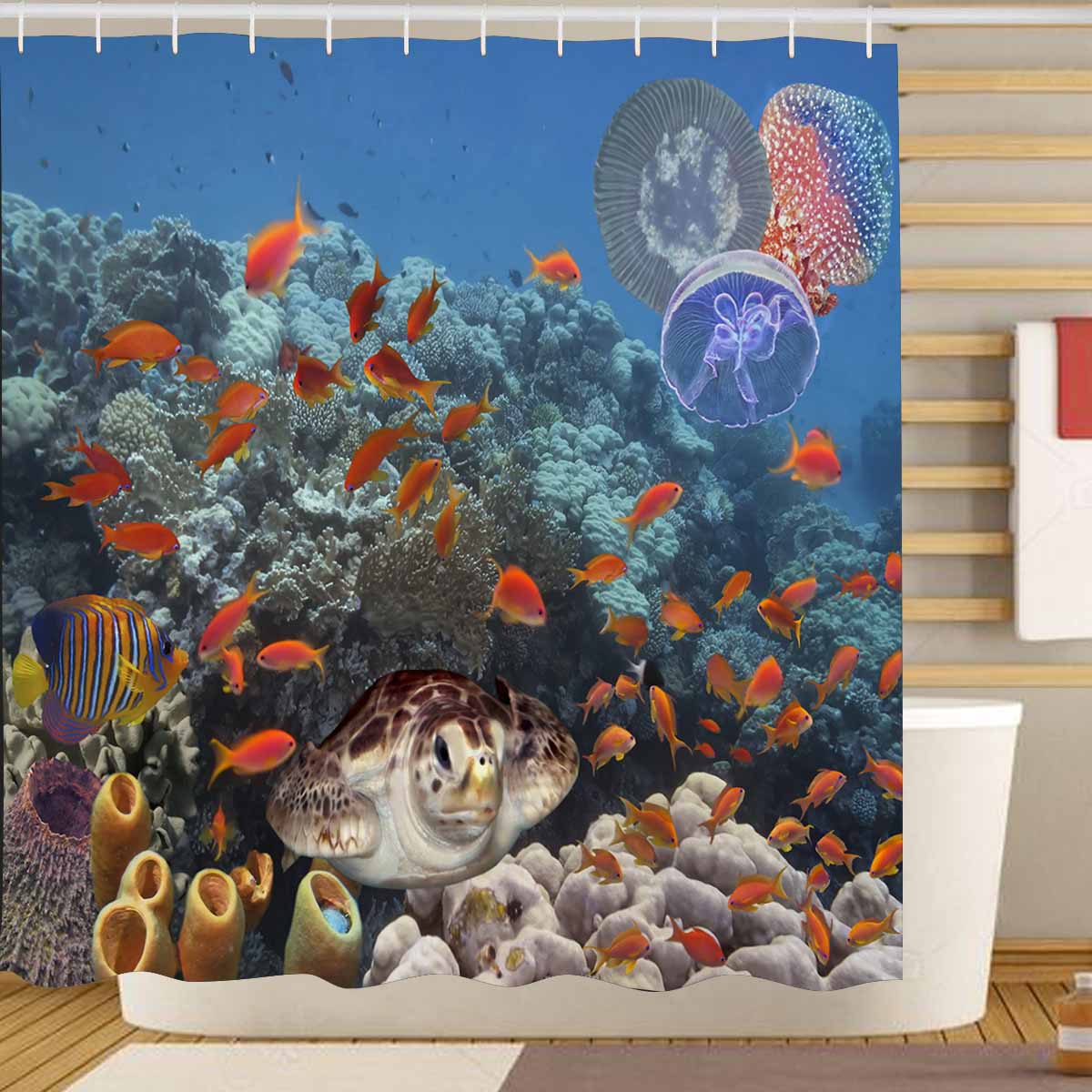Seaworld themed print on shower curtains for bathroom, create a brilliant atmosphere in your bathroom, include a selection of different stylish and custom-made designs for your bath decoration.