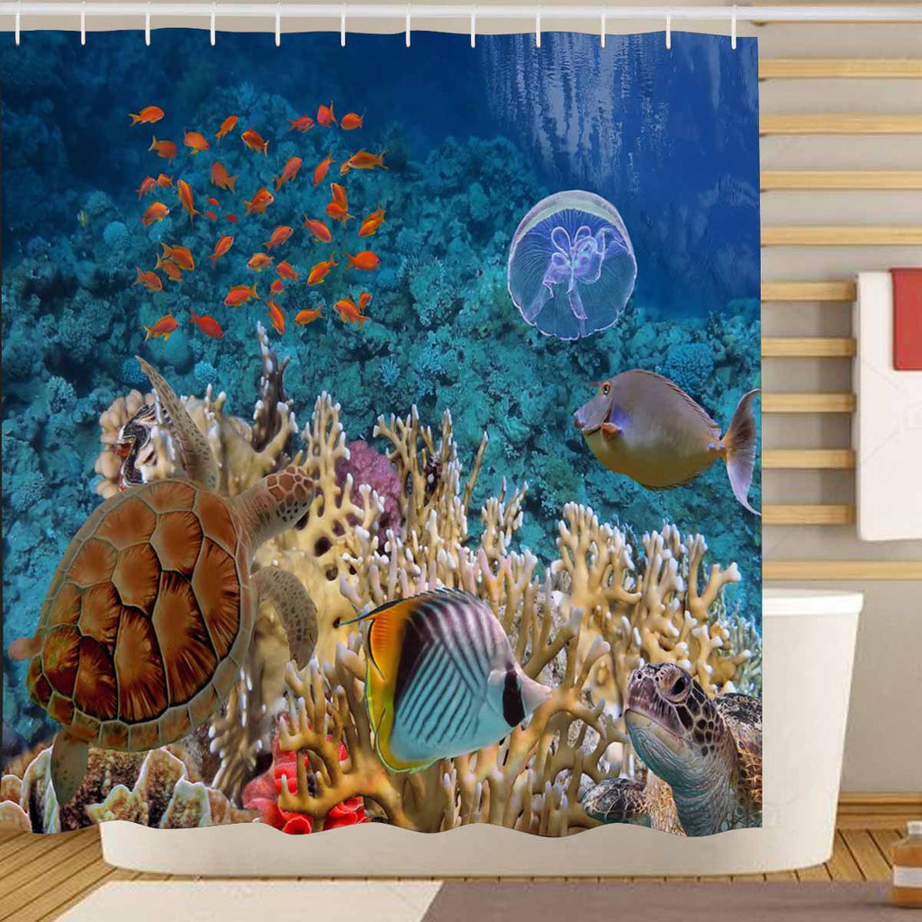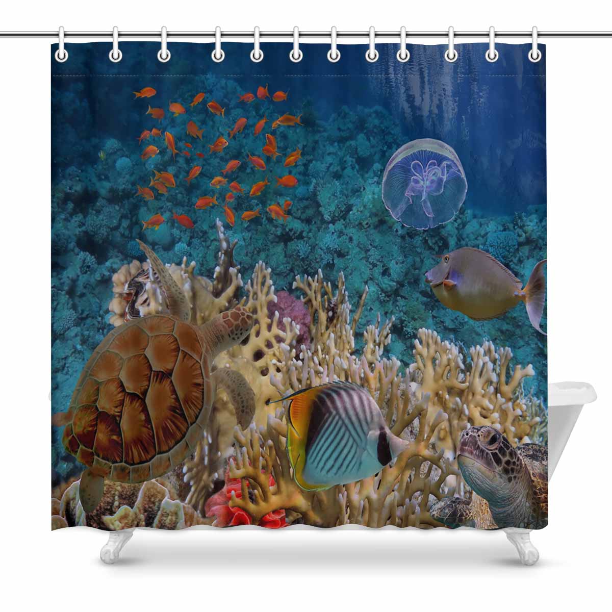 Seaworld themed print on shower curtains for bathroom, create a brilliant atmosphere in your bathroom, include a selection of different stylish and custom-made designs for your bath decoration.