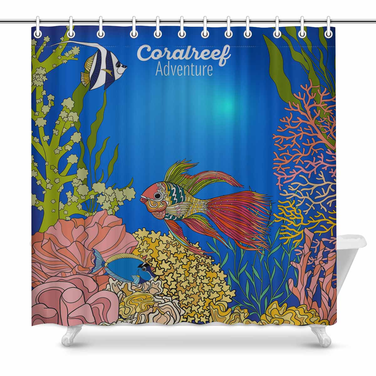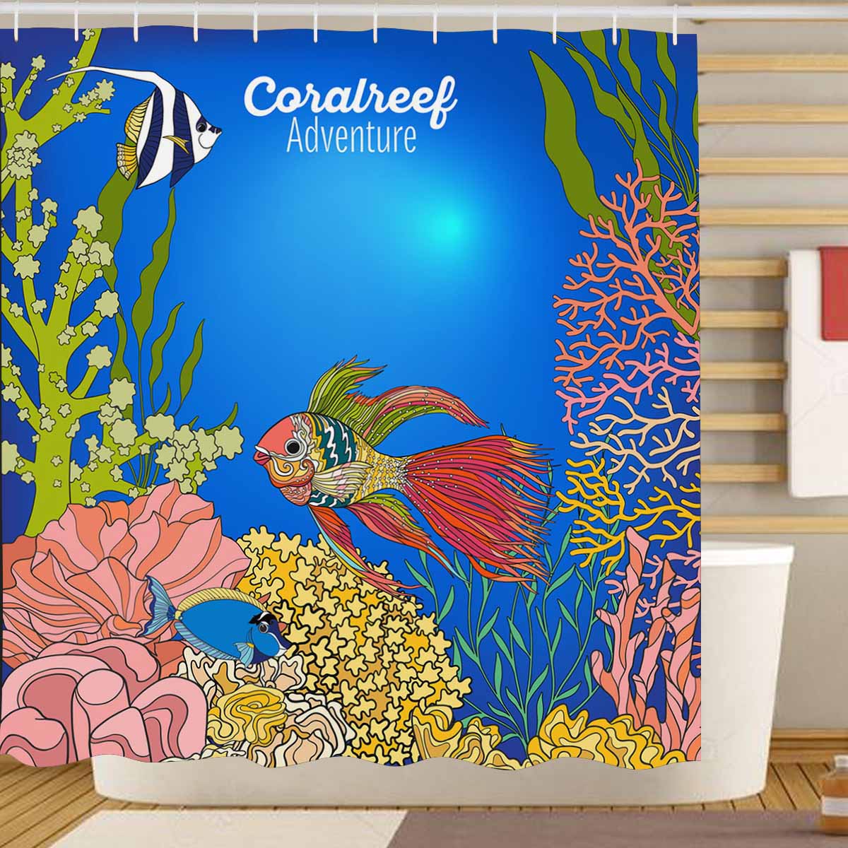 Seaworld Shower Curtains print with Corals fish and seaweeds