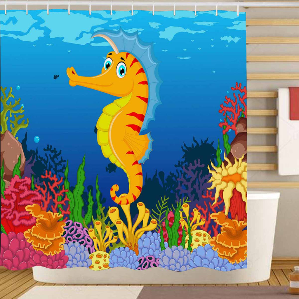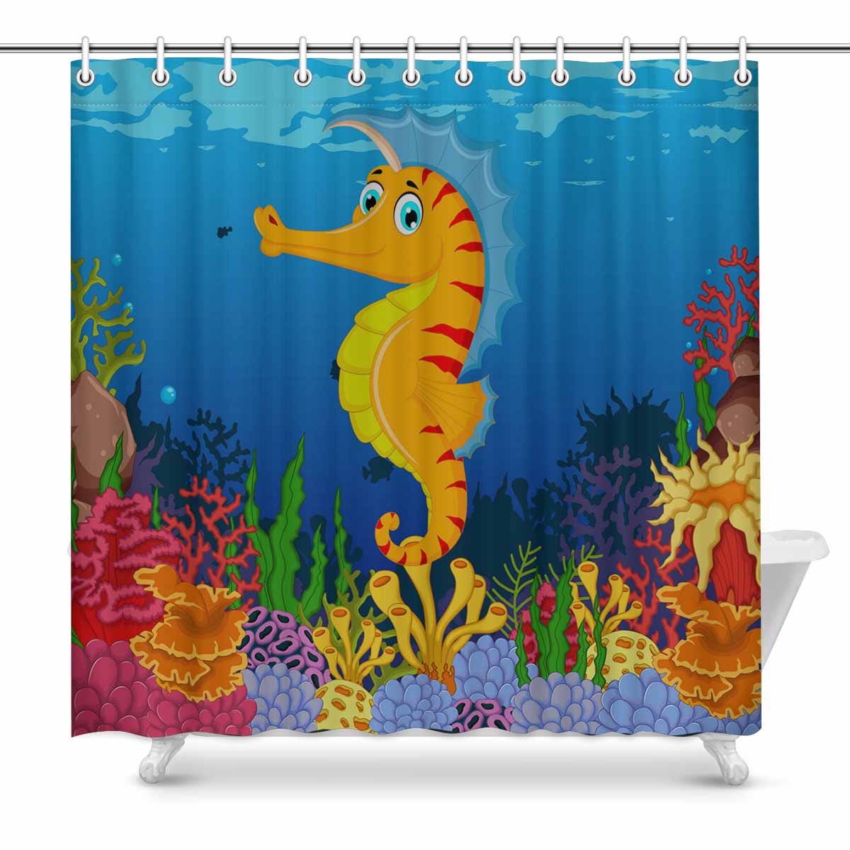 Seaworld Shower Curtains print with cute cartoon seahorse