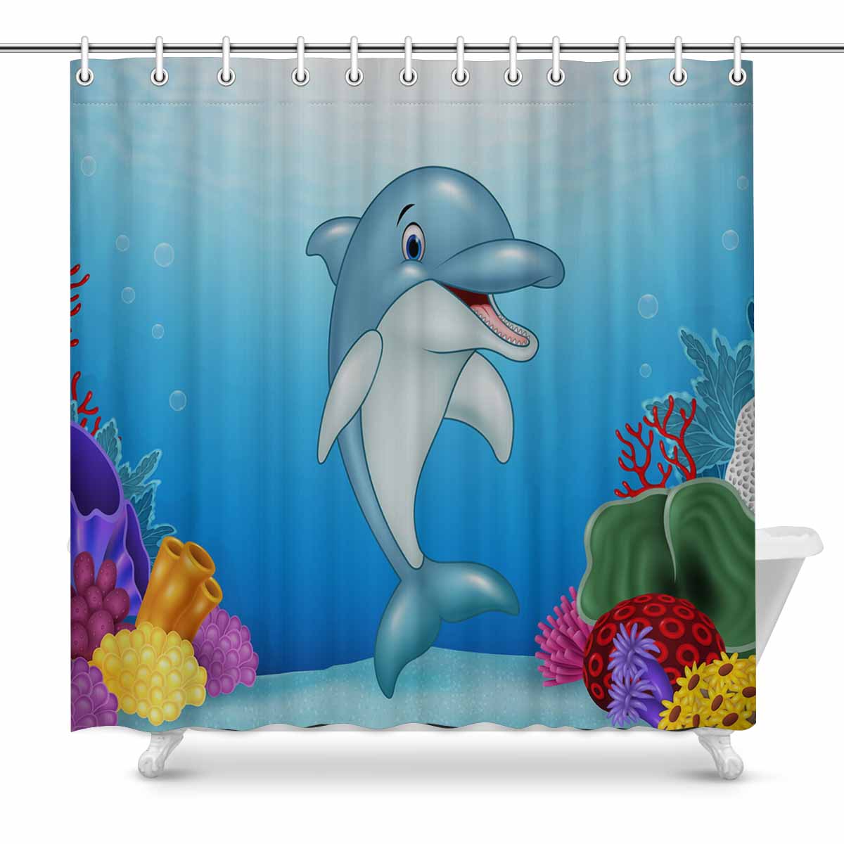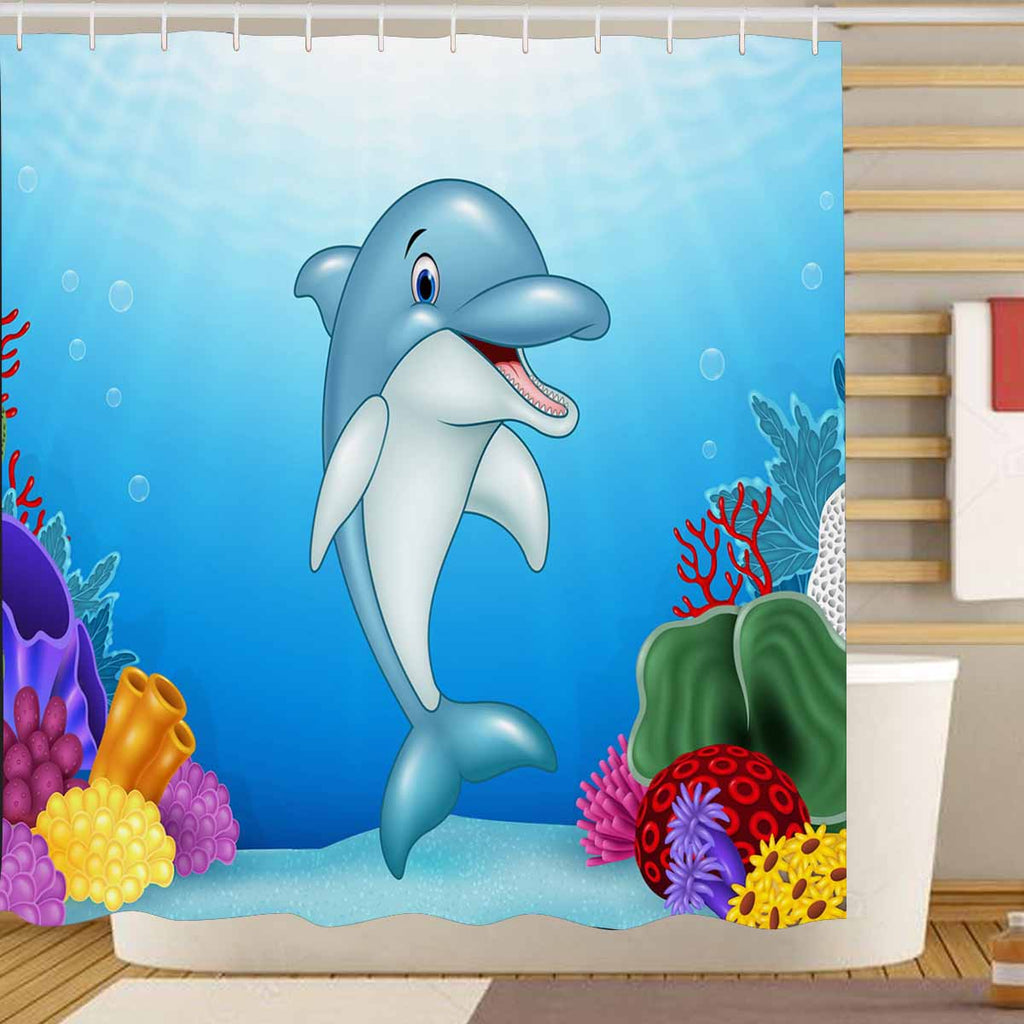 Seaworld Shower Curtains print with Cute Dolphin
