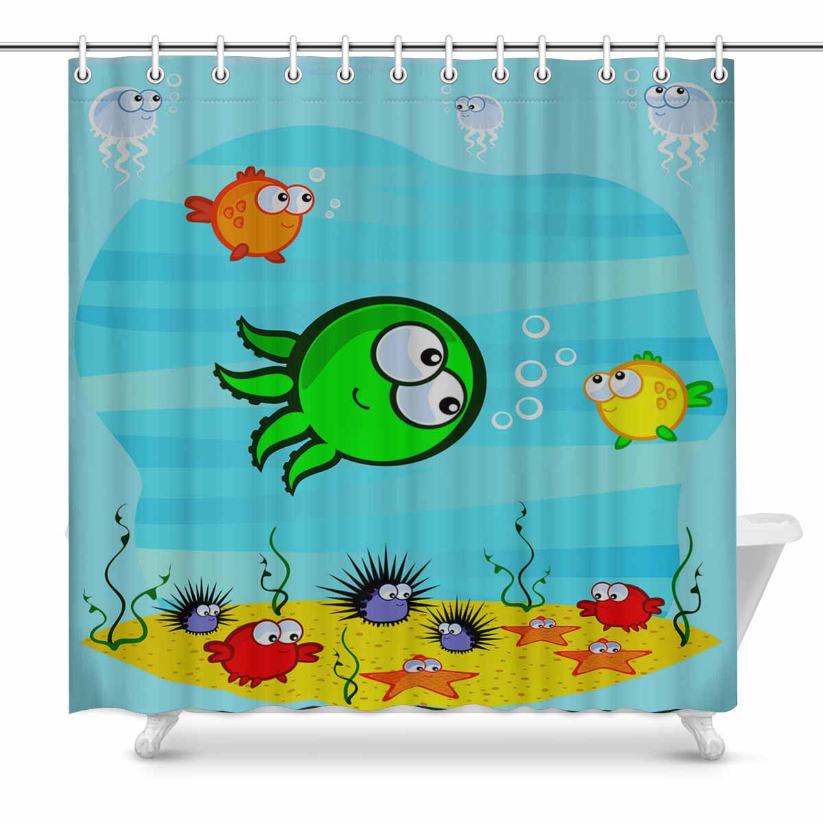 Seaworld themed print on shower curtains for bathroom, create a brilliant atmosphere in your bathroom, include a selection of different stylish and custom-made designs for your bath decoration.