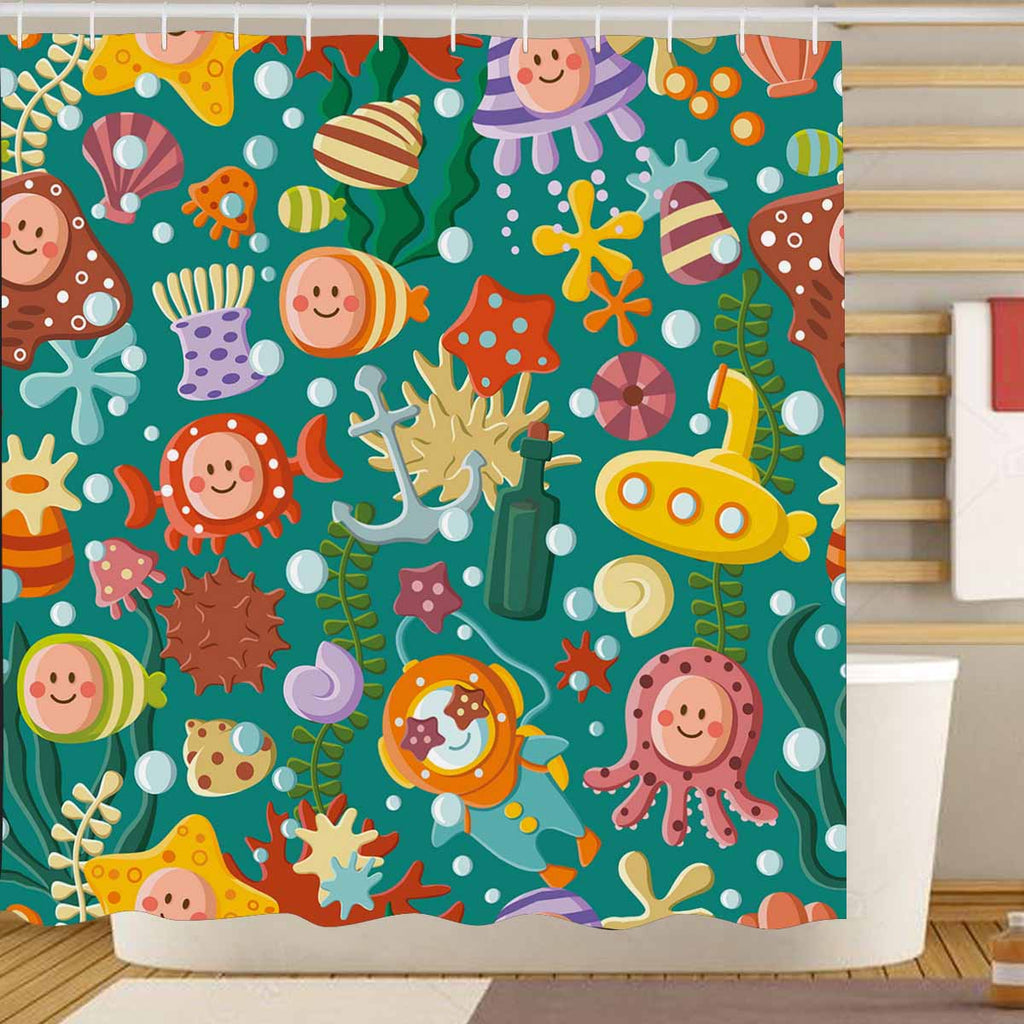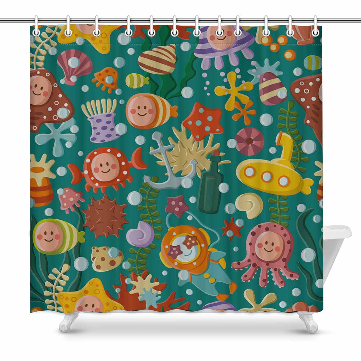 Seaworld themed print on shower curtains for bathroom, create a brilliant atmosphere in your bathroom, include a selection of different stylish and custom-made designs for your bath decoration.