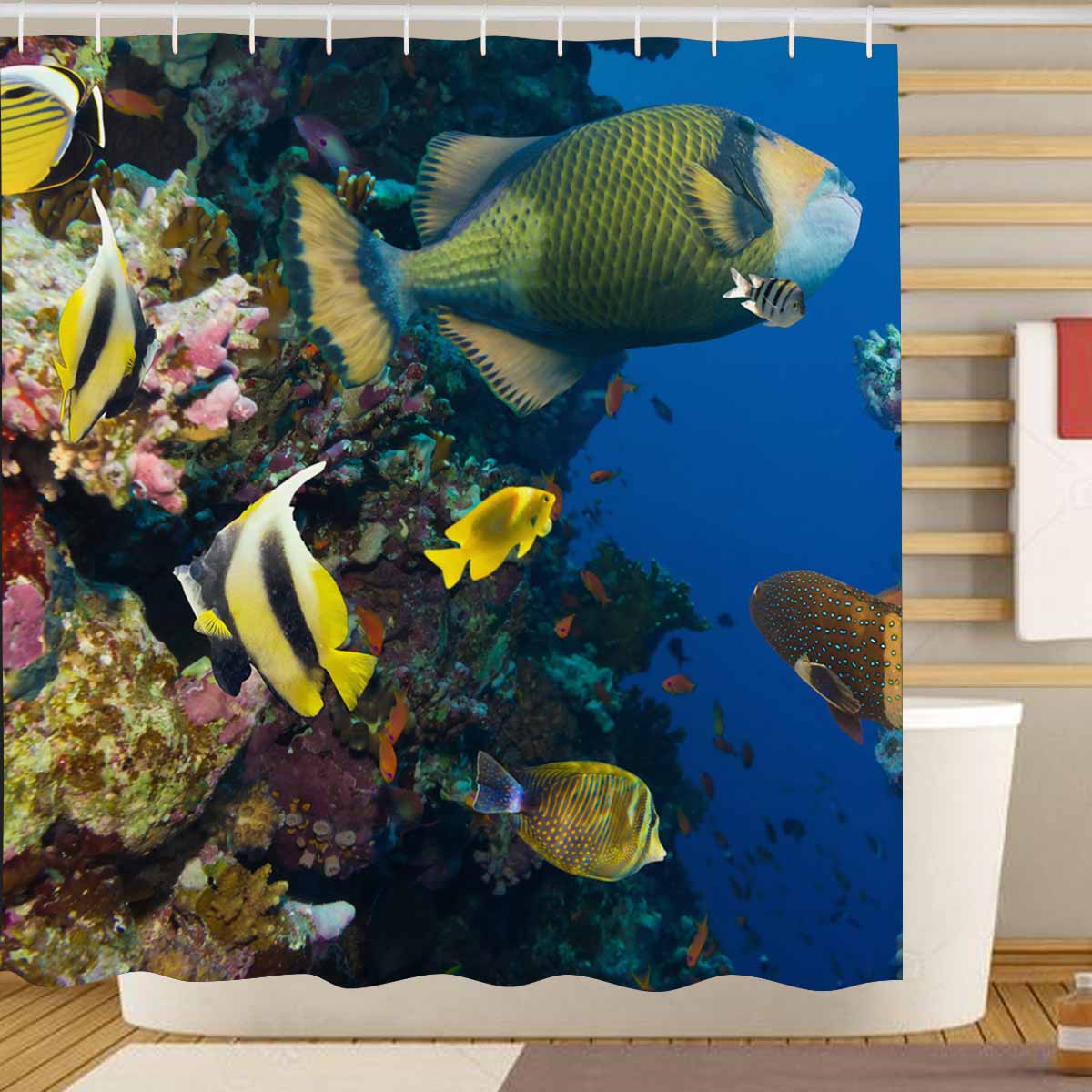 Seaworld themed print on shower curtains for bathroom, create a brilliant atmosphere in your bathroom, include a selection of different stylish and custom-made designs for your bath decoration.