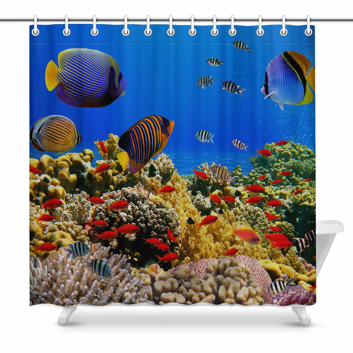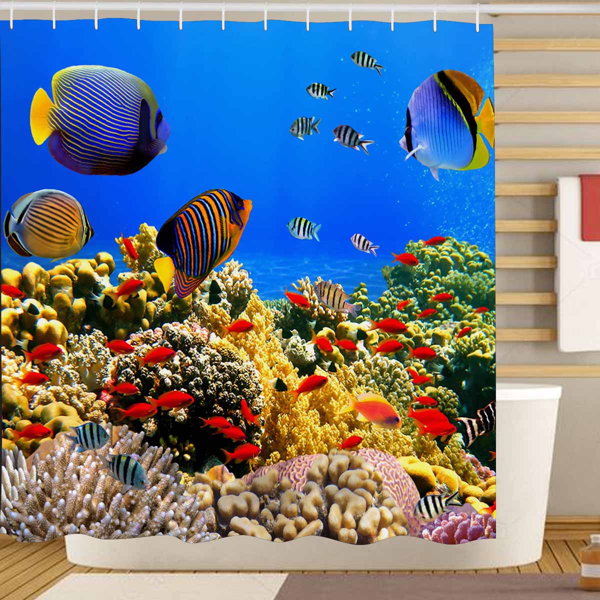Seaworld themed print on shower curtains for bathroom, create a brilliant atmosphere in your bathroom, include a selection of different stylish and custom-made designs for your bath decoration.