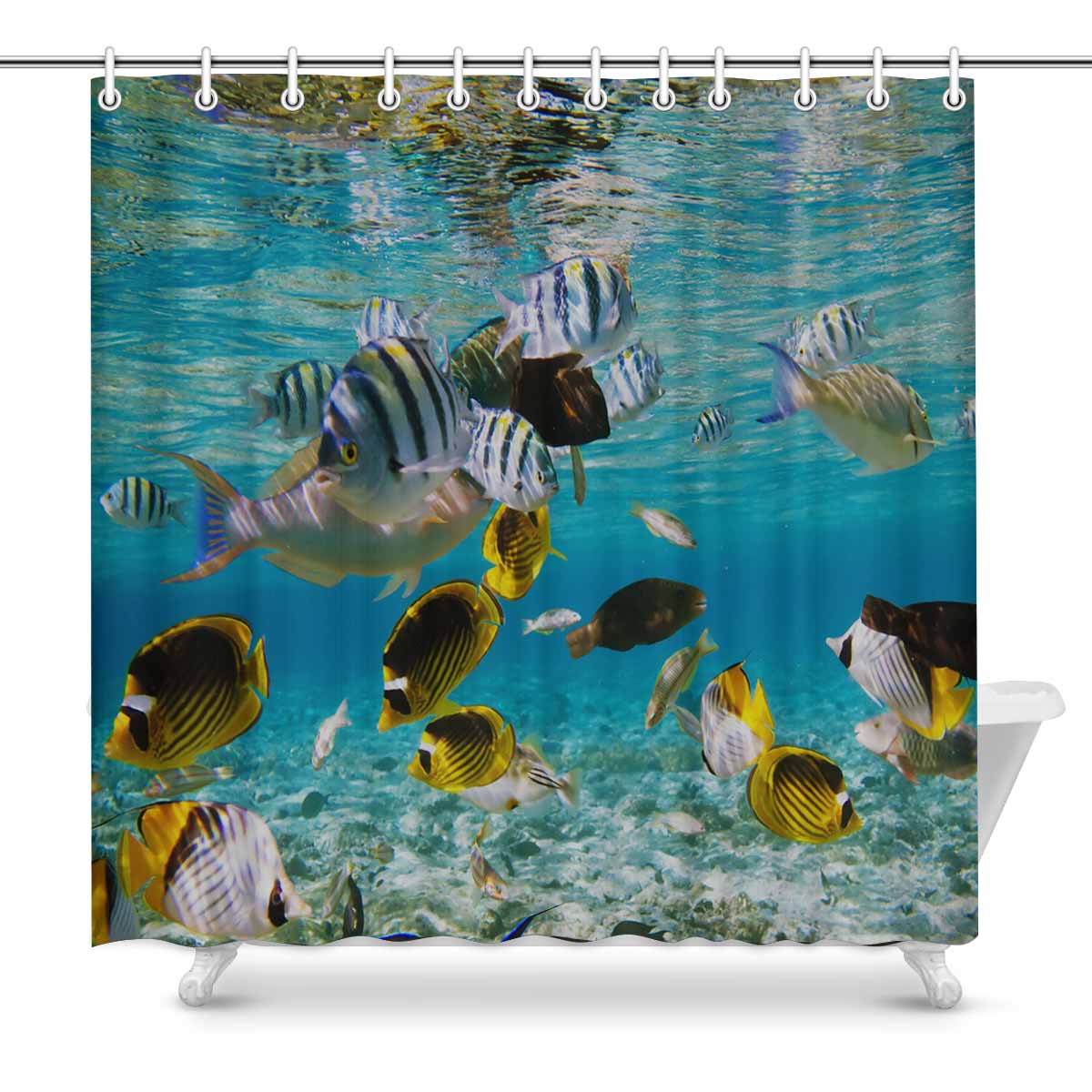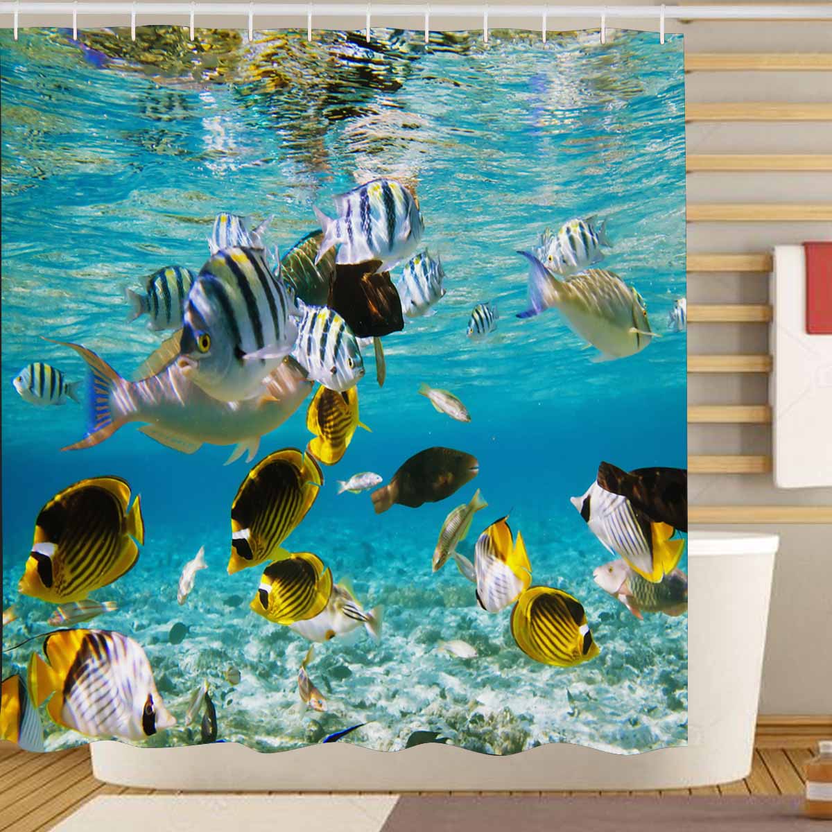 Seaworld themed print on shower curtains for bathroom, create a brilliant atmosphere in your bathroom, include a selection of different stylish and custom-made designs for your bath decoration.