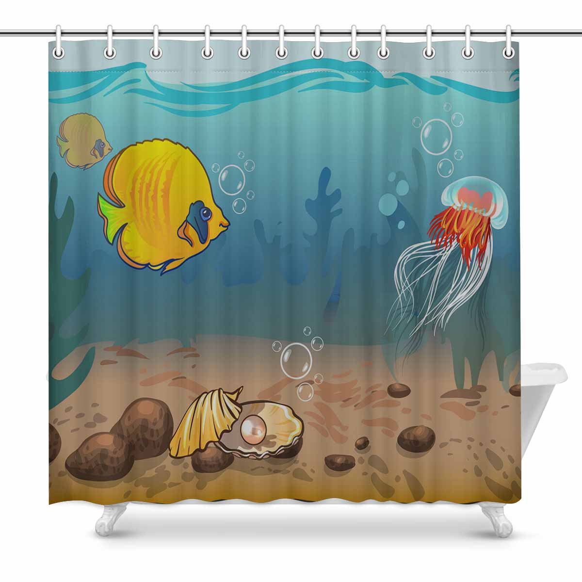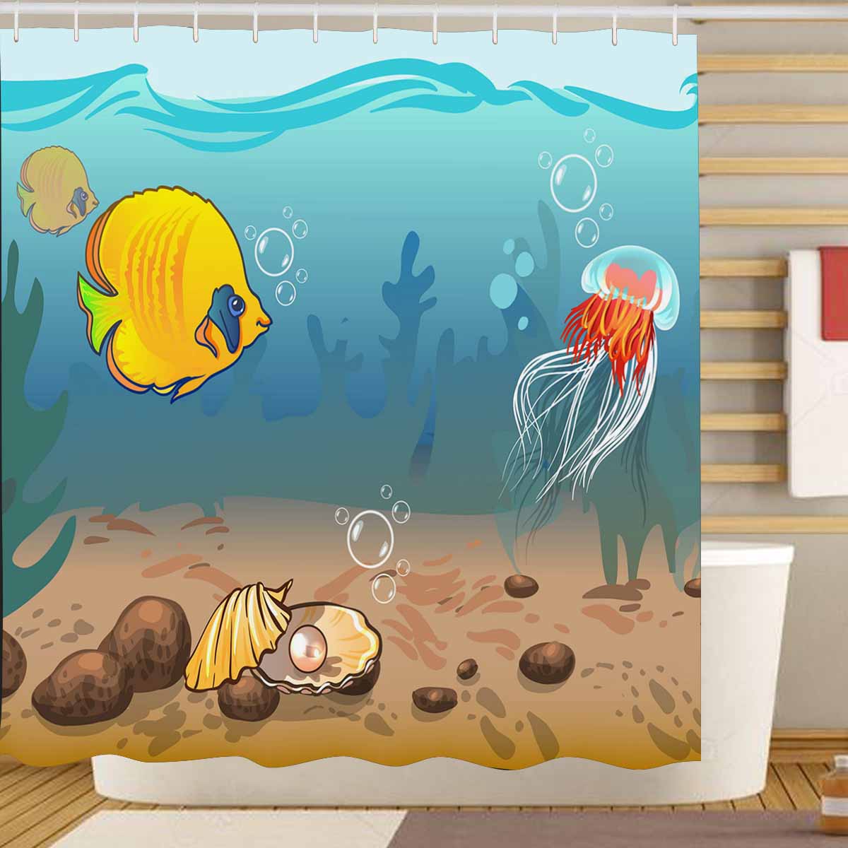 Seaworld themed print on shower curtains for bathroom, create a brilliant atmosphere in your bathroom, include a selection of different stylish and custom-made designs for your bath decoration.