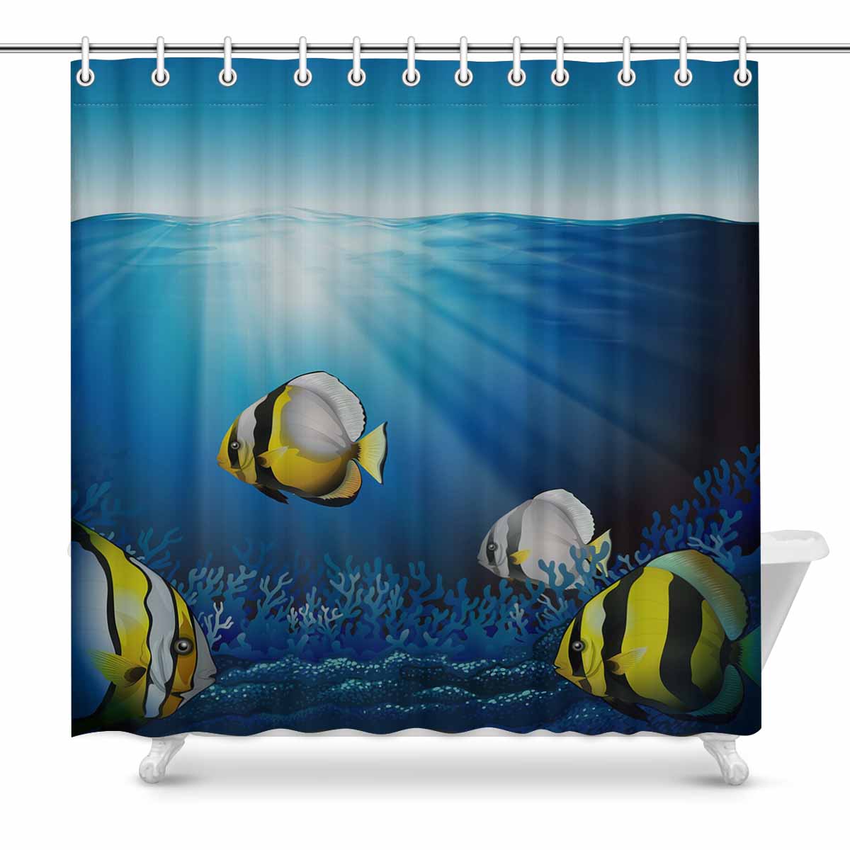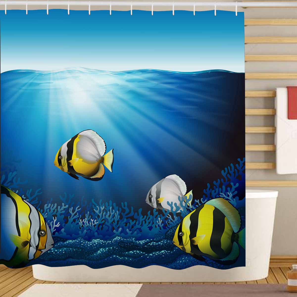 Seaworld themed print on shower curtains for bathroom, create a brilliant atmosphere in your bathroom, include a selection of different stylish and custom-made designs for your bath decoration.