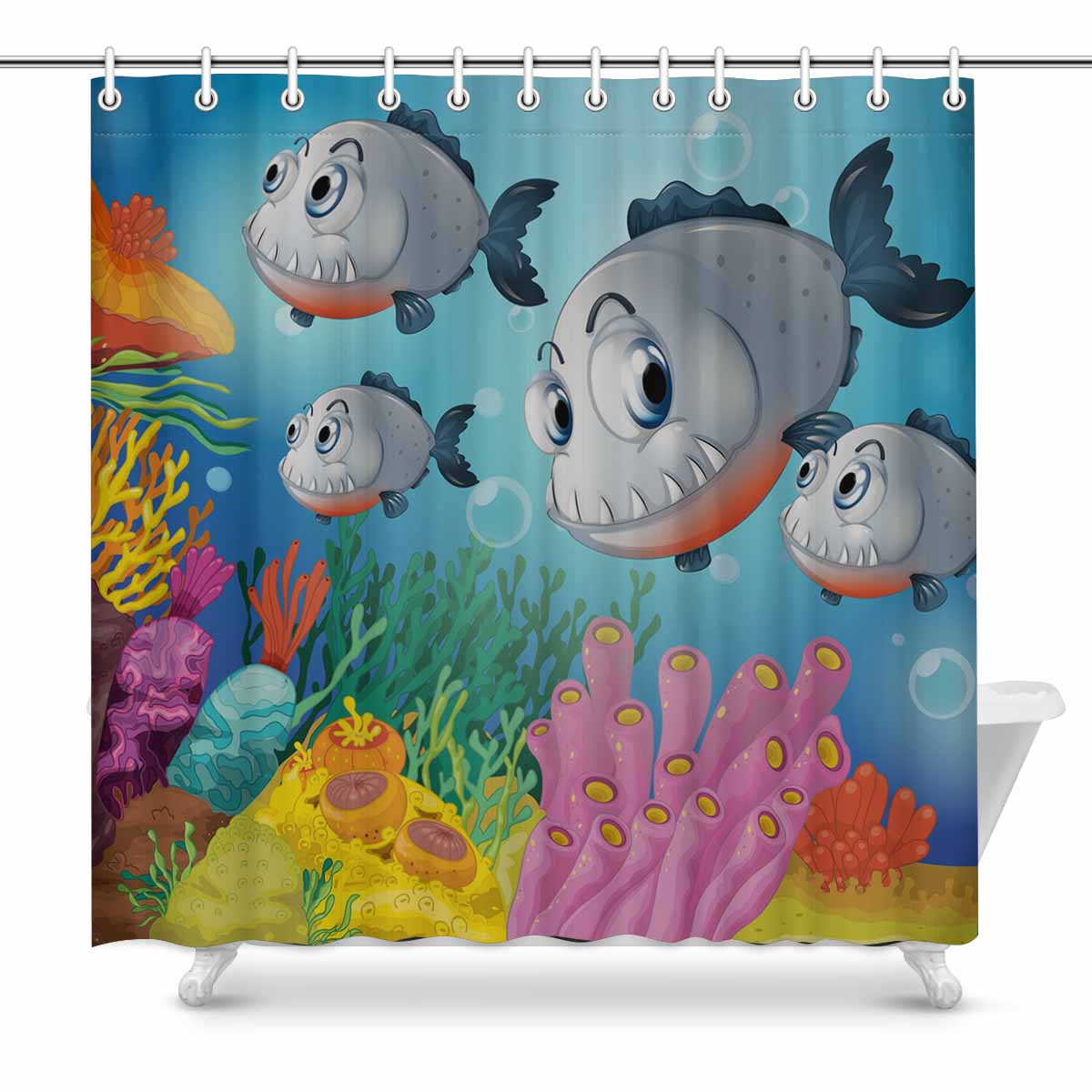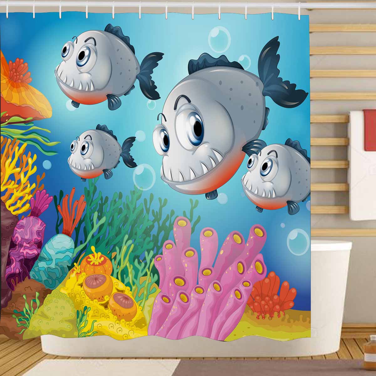 Seaworld themed print on shower curtains for bathroom, create a brilliant atmosphere in your bathroom, include a selection of different stylish and custom-made designs for your bath decoration.