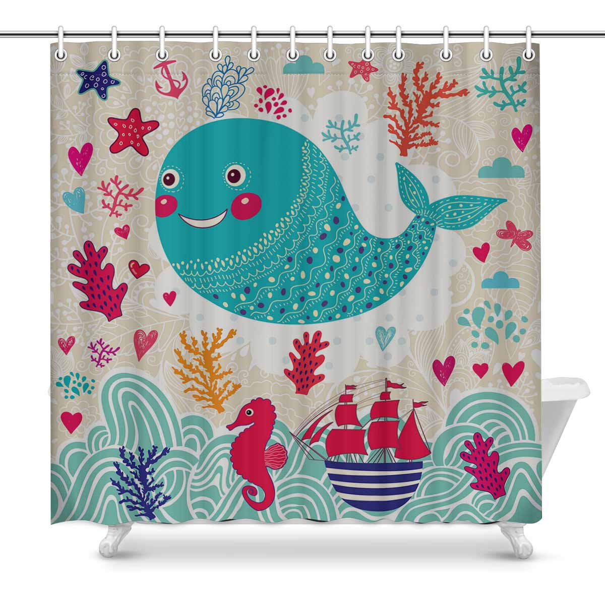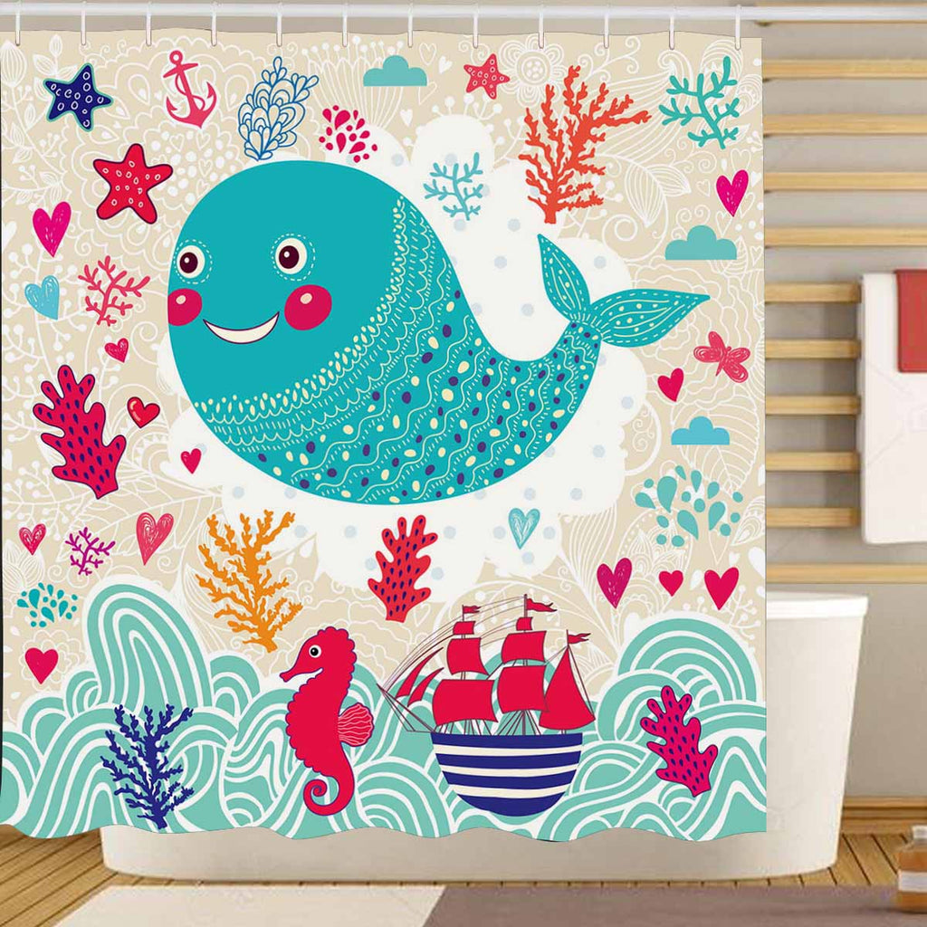 Seaworld themed print on shower curtains for bathroom, create a brilliant atmosphere in your bathroom, include a selection of different stylish and custom-made designs for your bath decoration.