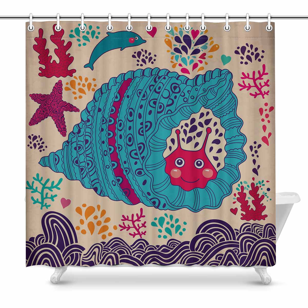 Seaworld themed print on shower curtains for bathroom, create a brilliant atmosphere in your bathroom, include a selection of different stylish and custom-made designs for your bath decoration.