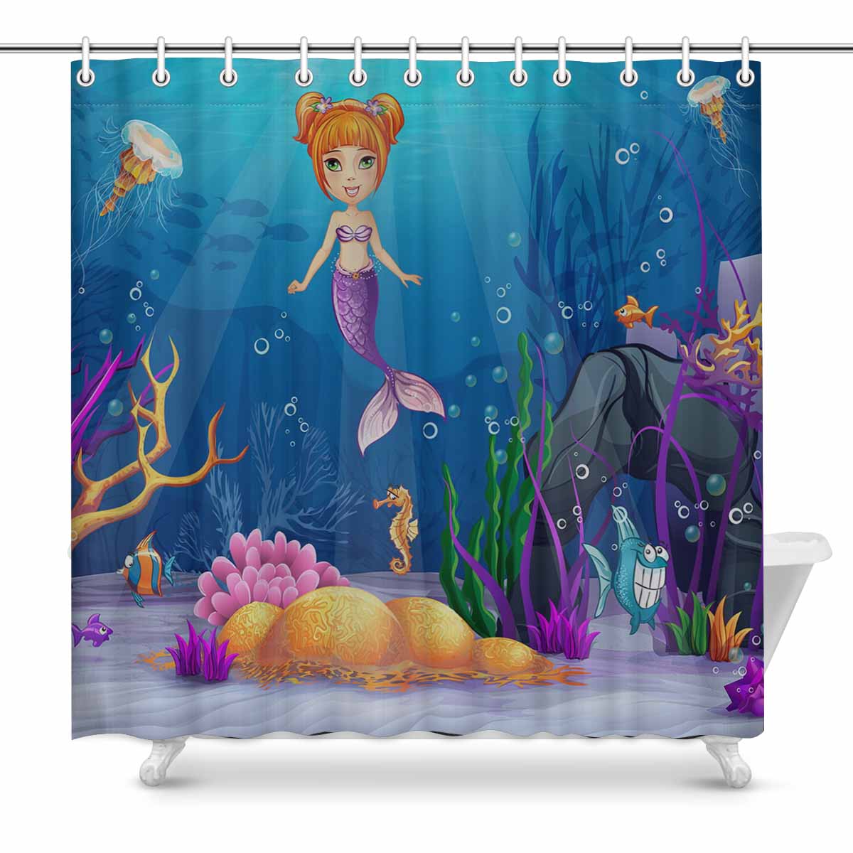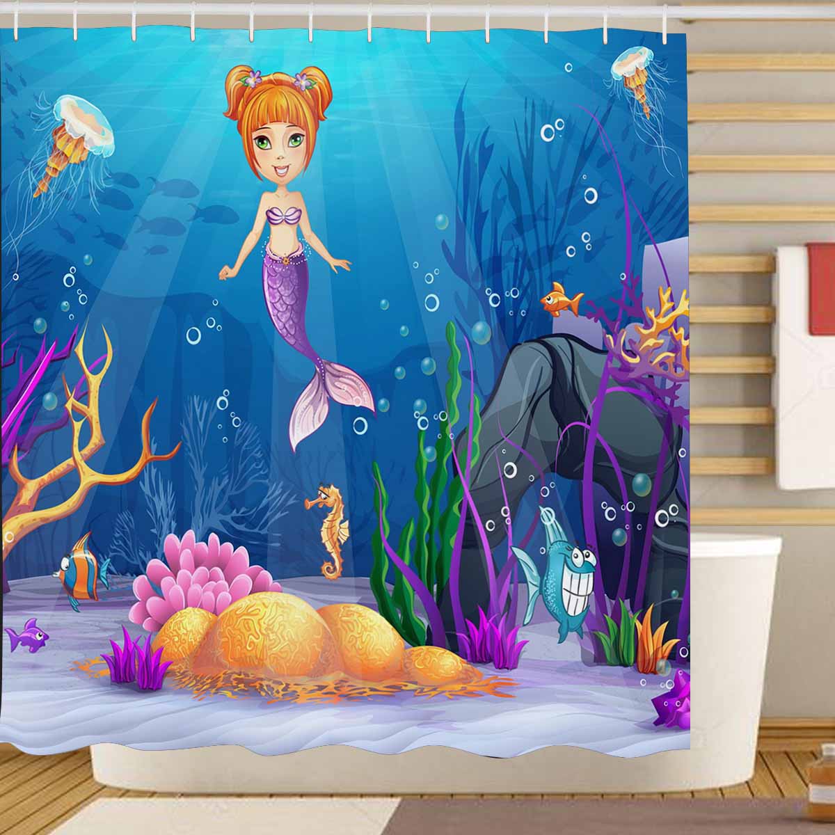 Seaworld Shower Curtains print with funny fish and a mermaid