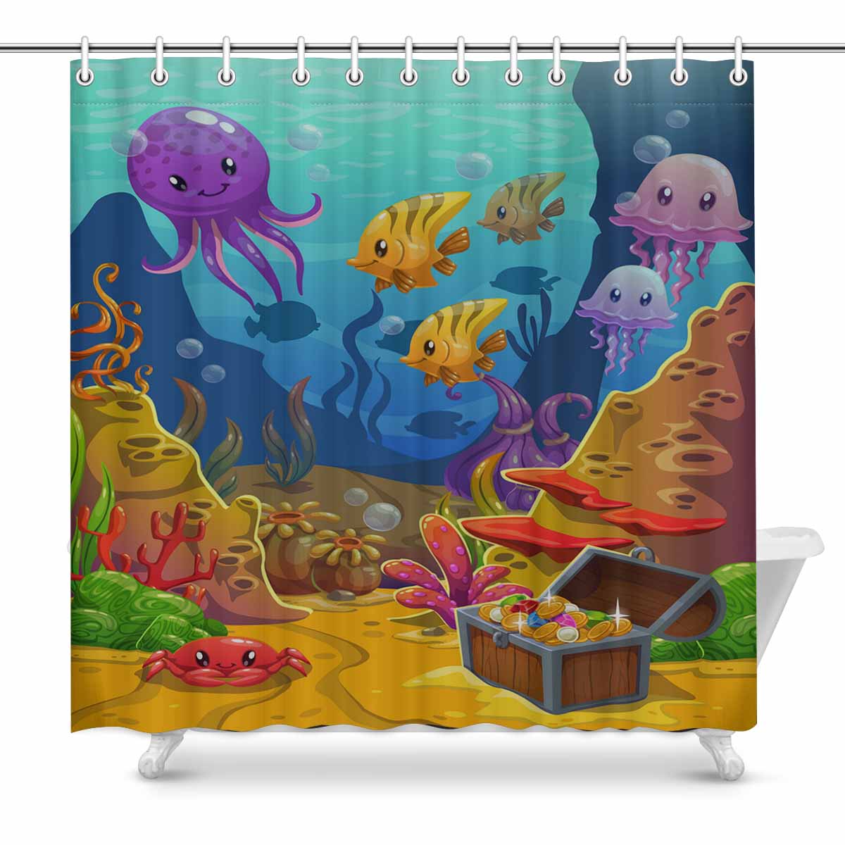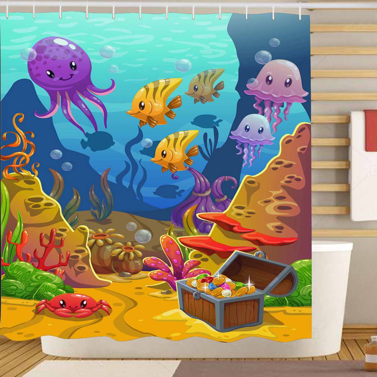 Seaworld themed print on shower curtains for bathroom, create a brilliant atmosphere in your bathroom, include a selection of different stylish and custom-made designs for your bath decoration.