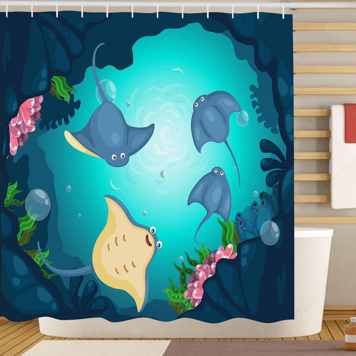 Seaworld themed print on shower curtains for bathroom, create a brilliant atmosphere in your bathroom, include a selection of different stylish and custom-made designs for your bath decoration.