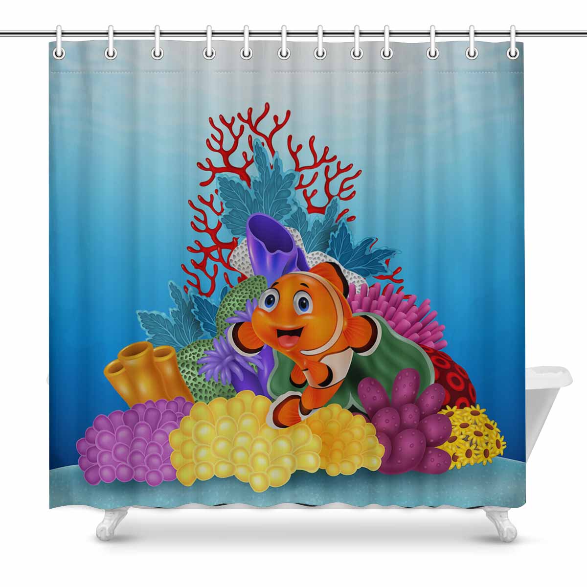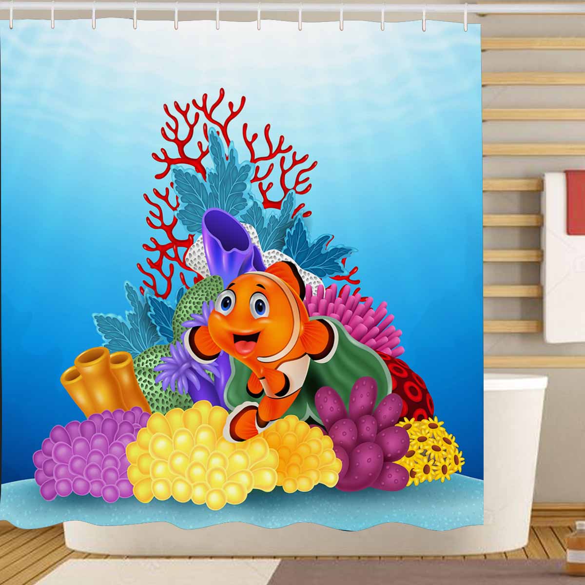 Seaworld themed print on shower curtains for bathroom, create a brilliant atmosphere in your bathroom, include a selection of different stylish and custom-made designs for your bath decoration.