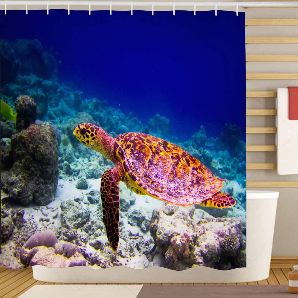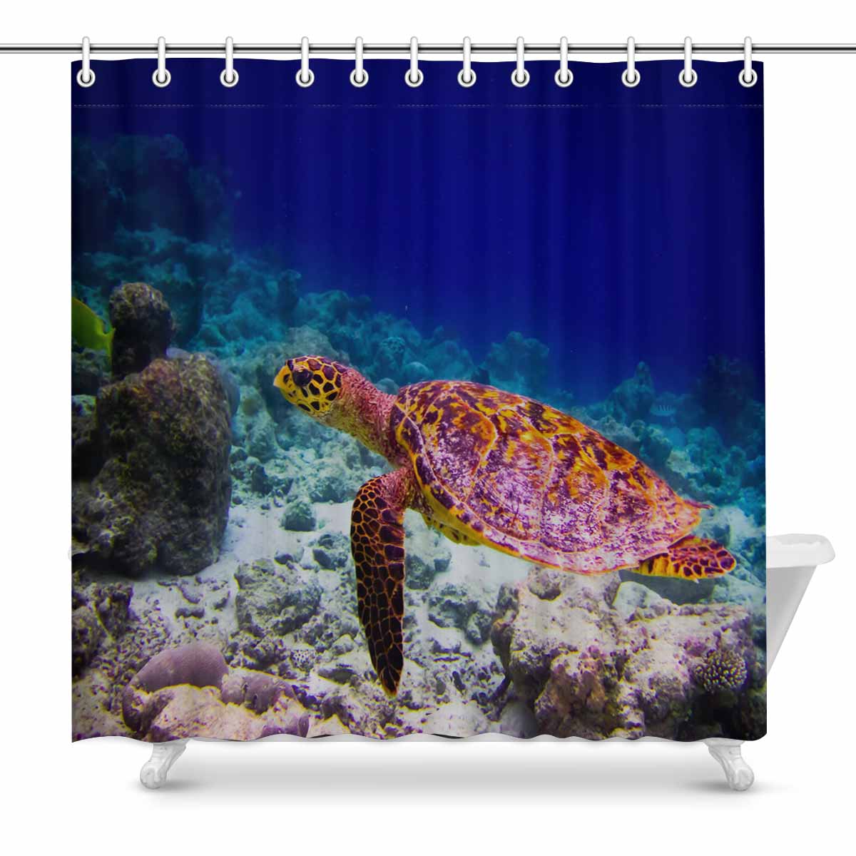 Seaworld Shower Curtains print with Hawksbill Turtle swiming
