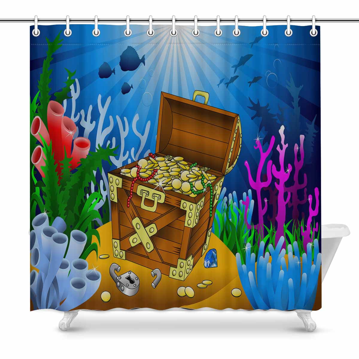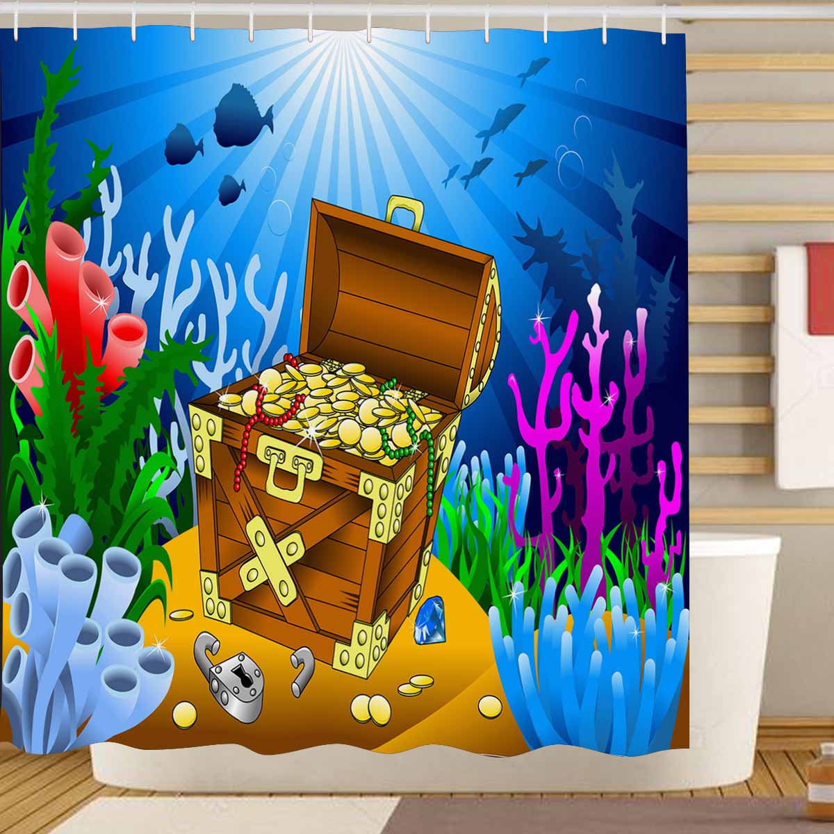 Seaworld themed print on shower curtains for bathroom, create a brilliant atmosphere in your bathroom, include a selection of different stylish and custom-made designs for your bath decoration.