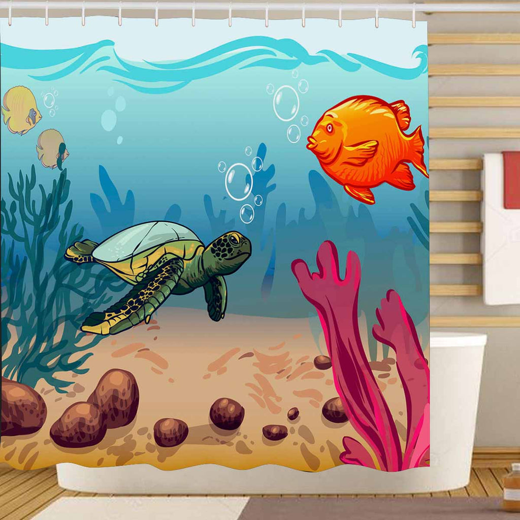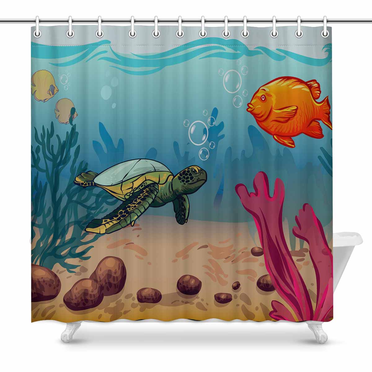Seaworld themed print on shower curtains for bathroom, create a brilliant atmosphere in your bathroom, include a selection of different stylish and custom-made designs for your bath decoration.
