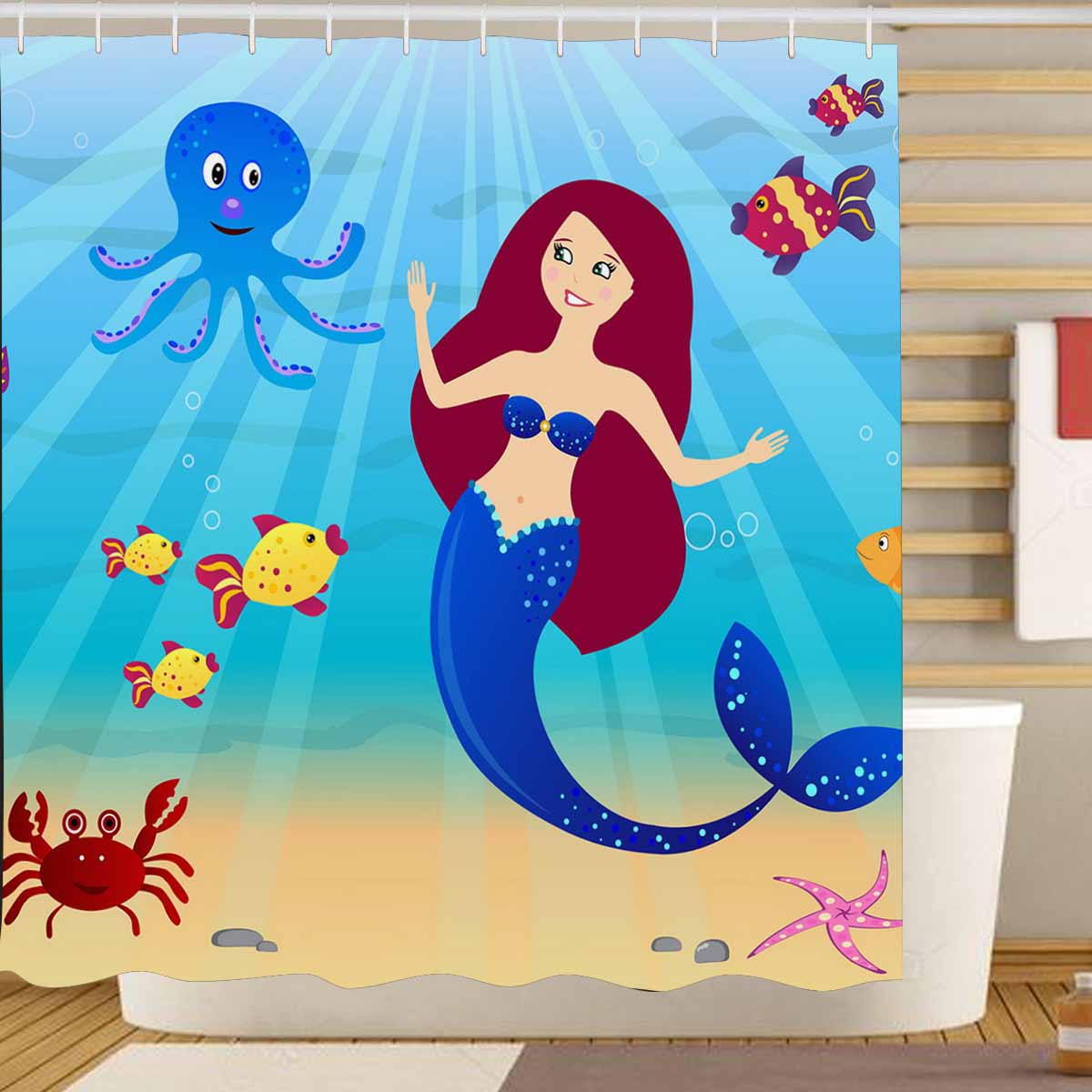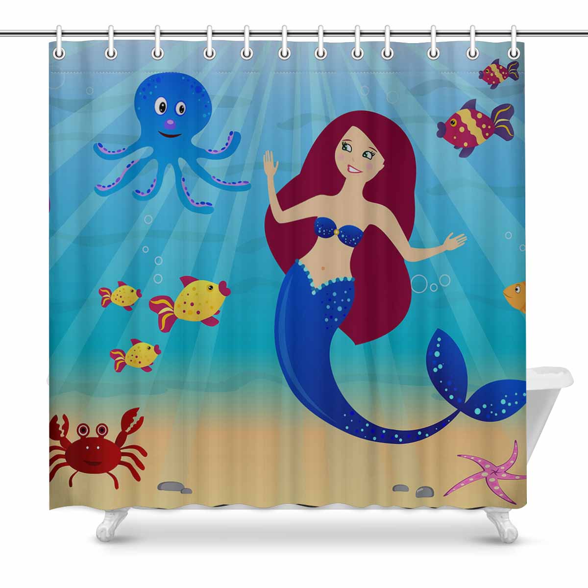 Seaworld themed print on shower curtains for bathroom, create a brilliant atmosphere in your bathroom, include a selection of different stylish and custom-made designs for your bath decoration.