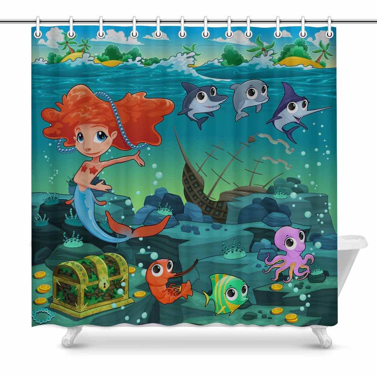 Seaworld themed print on shower curtains for bathroom, create a brilliant atmosphere in your bathroom, include a selection of different stylish and custom-made designs for your bath decoration.