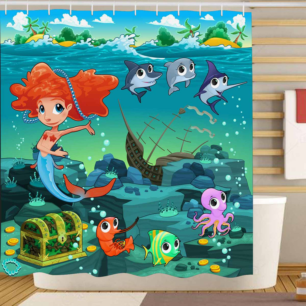 Seaworld Shower Curtains print with Mermaid with funny animals