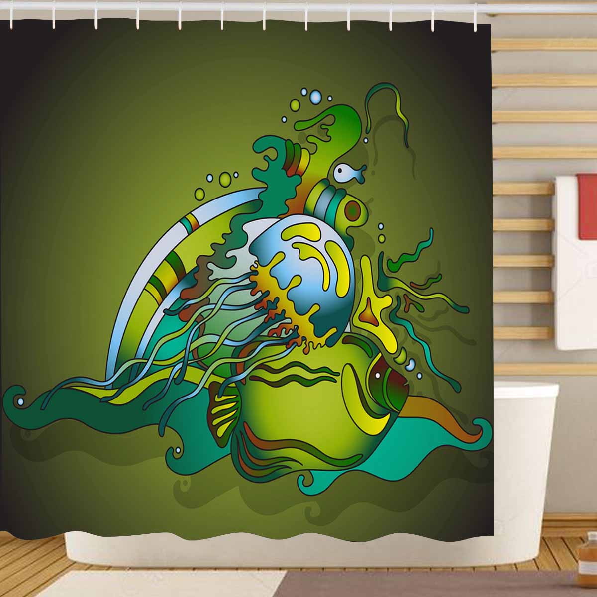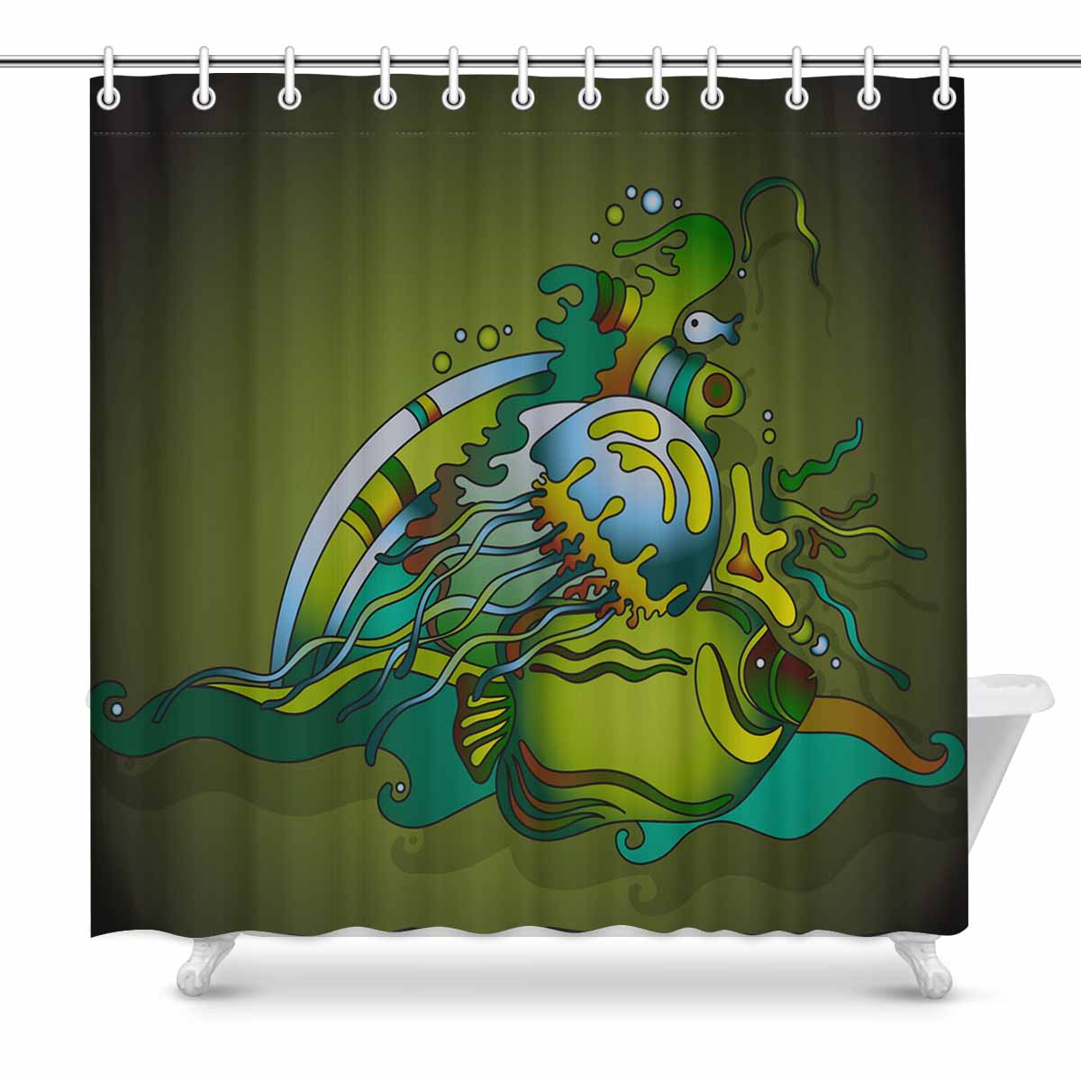 Seaworld themed print on shower curtains for bathroom, create a brilliant atmosphere in your bathroom, include a selection of different stylish and custom-made designs for your bath decoration.