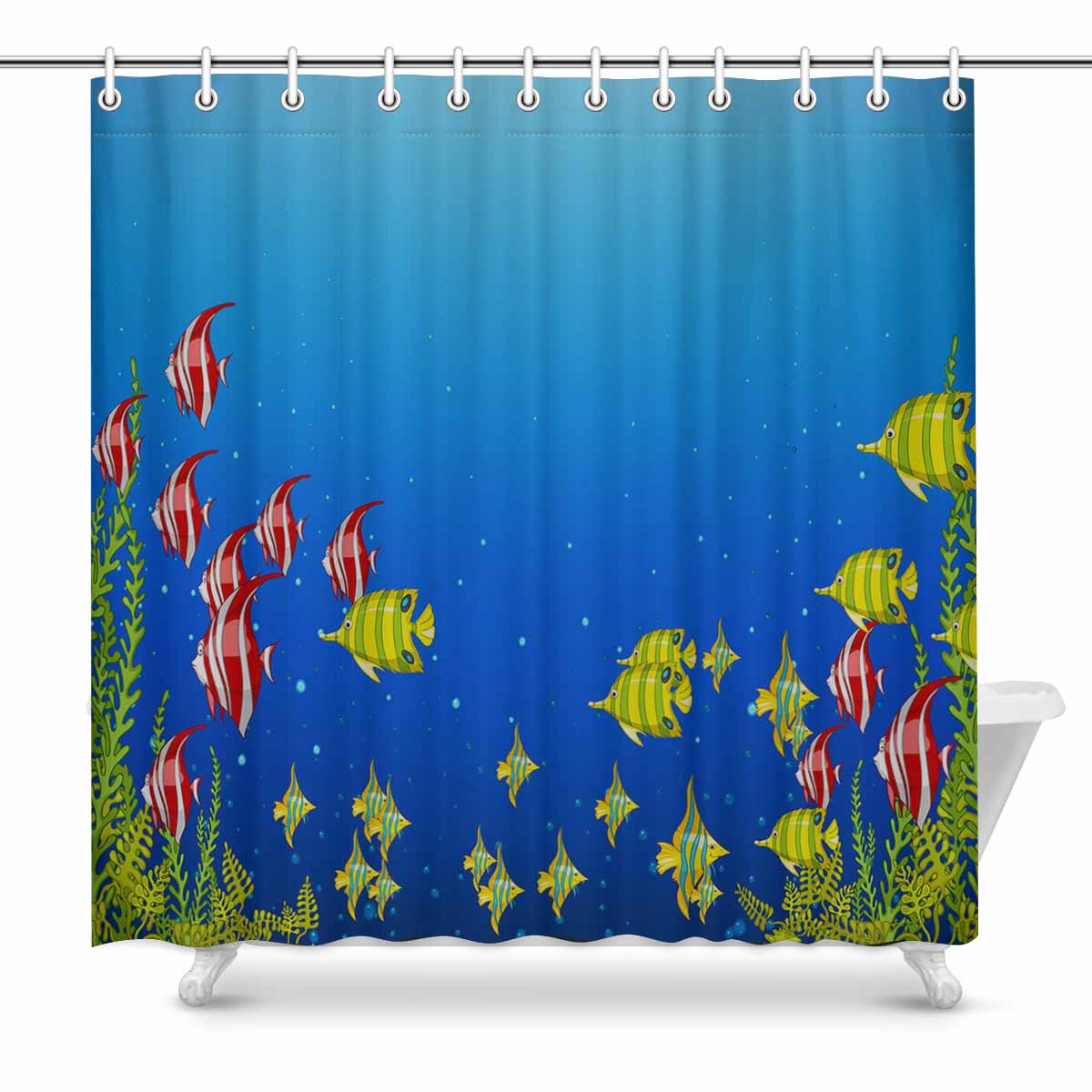 Seaworld themed print on shower curtains for bathroom, create a brilliant atmosphere in your bathroom, include a selection of different stylish and custom-made designs for your bath decoration.