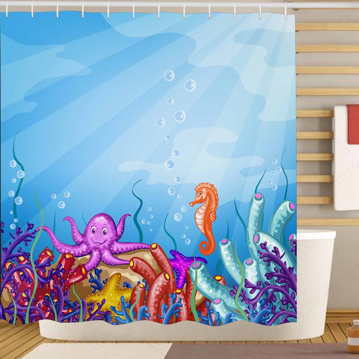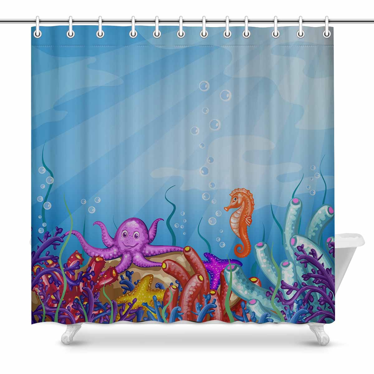 Seaworld themed print on shower curtains for bathroom, create a brilliant atmosphere in your bathroom, include a selection of different stylish and custom-made designs for your bath decoration.