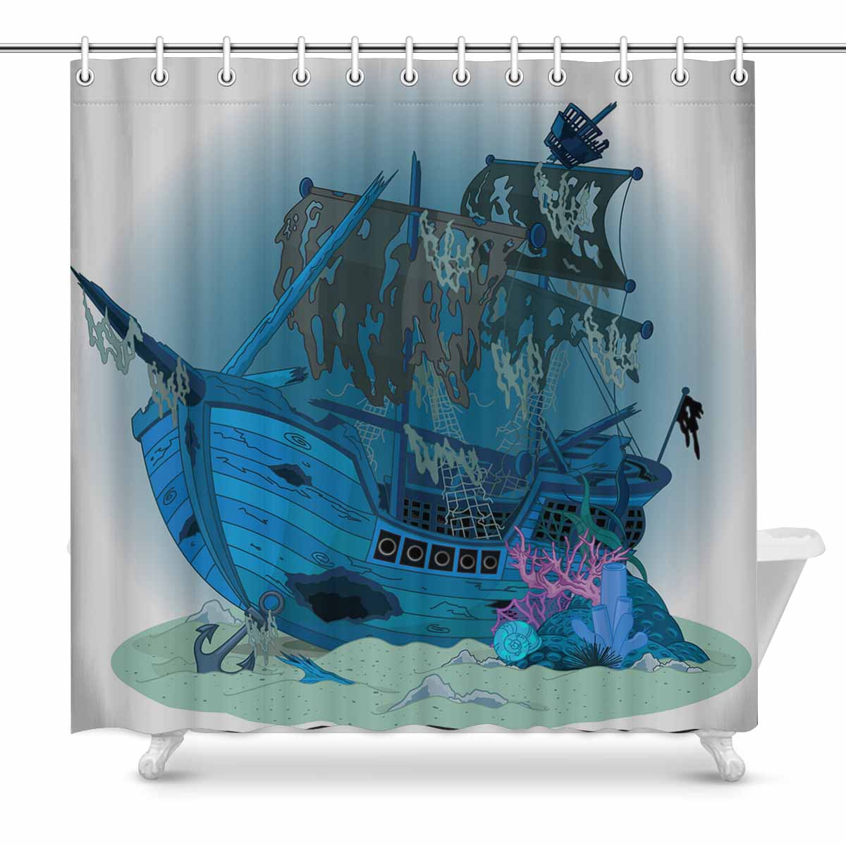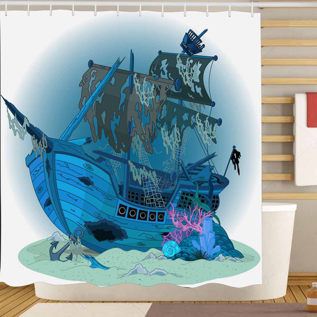 Seaworld themed print on shower curtains for bathroom, create a brilliant atmosphere in your bathroom, include a selection of different stylish and custom-made designs for your bath decoration.