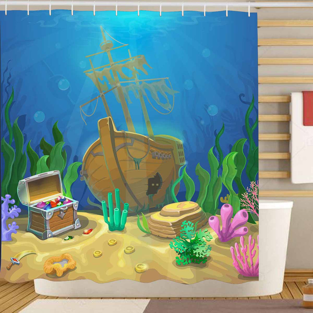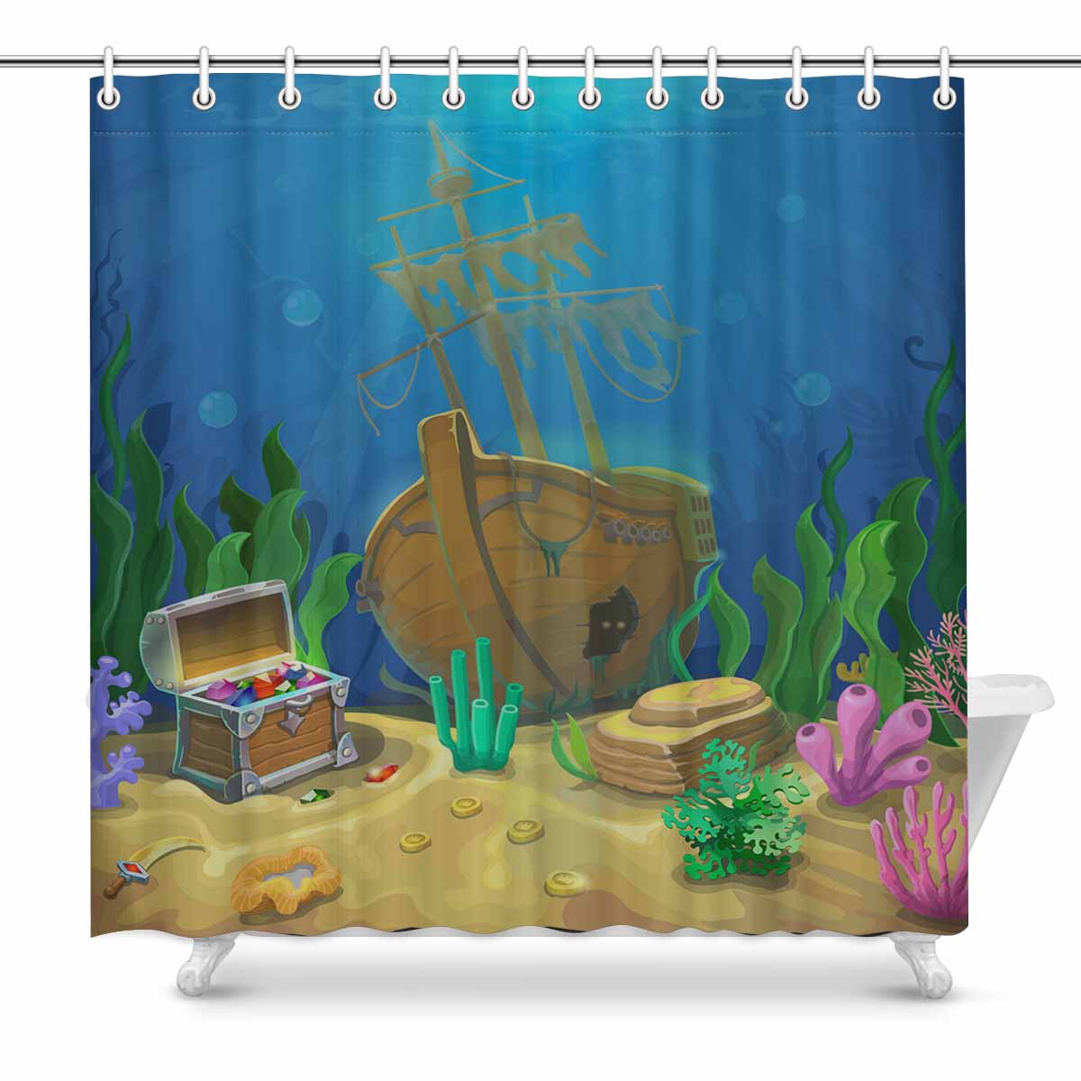 Seaworld Shower Curtains print with Pirate ship treasure chest
