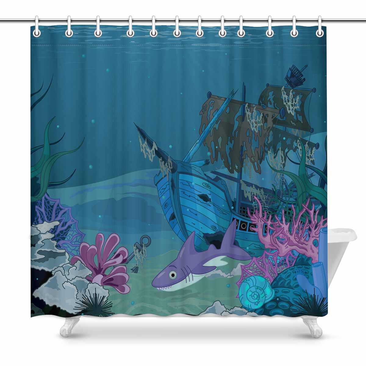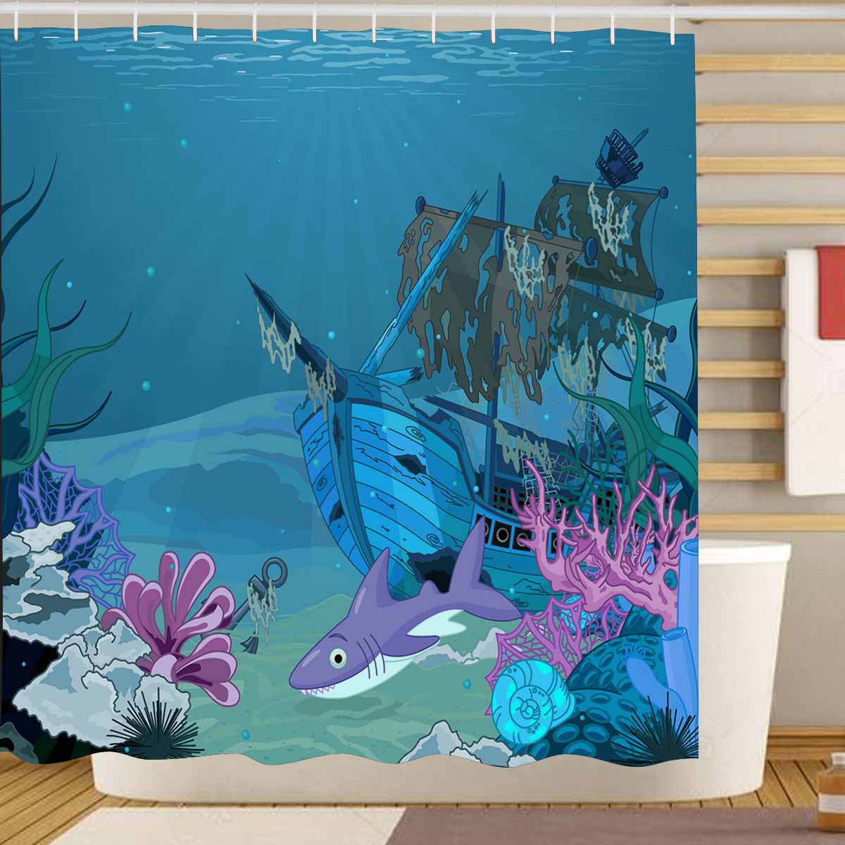 Seaworld themed print on shower curtains for bathroom, create a brilliant atmosphere in your bathroom, include a selection of different stylish and custom-made designs for your bath decoration.