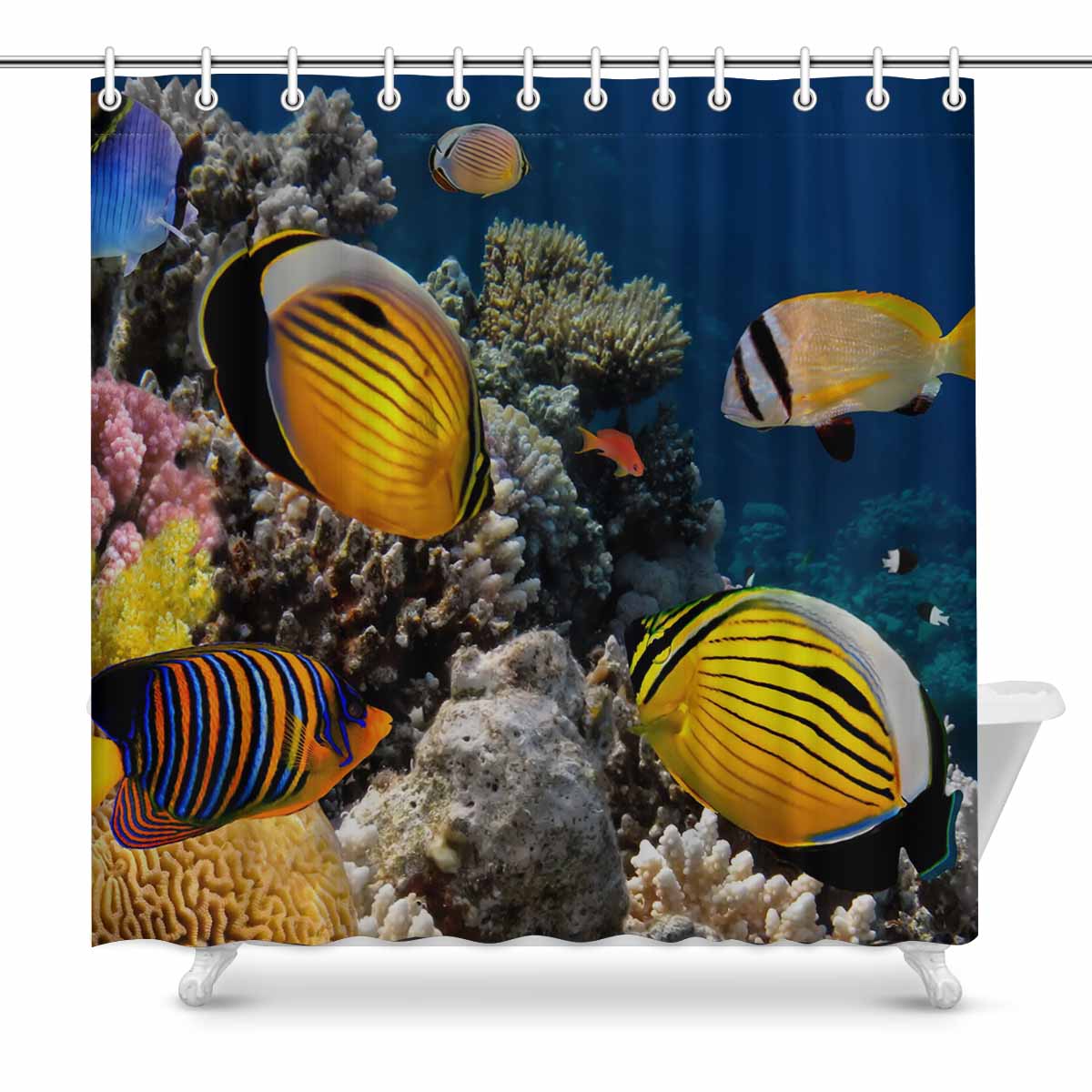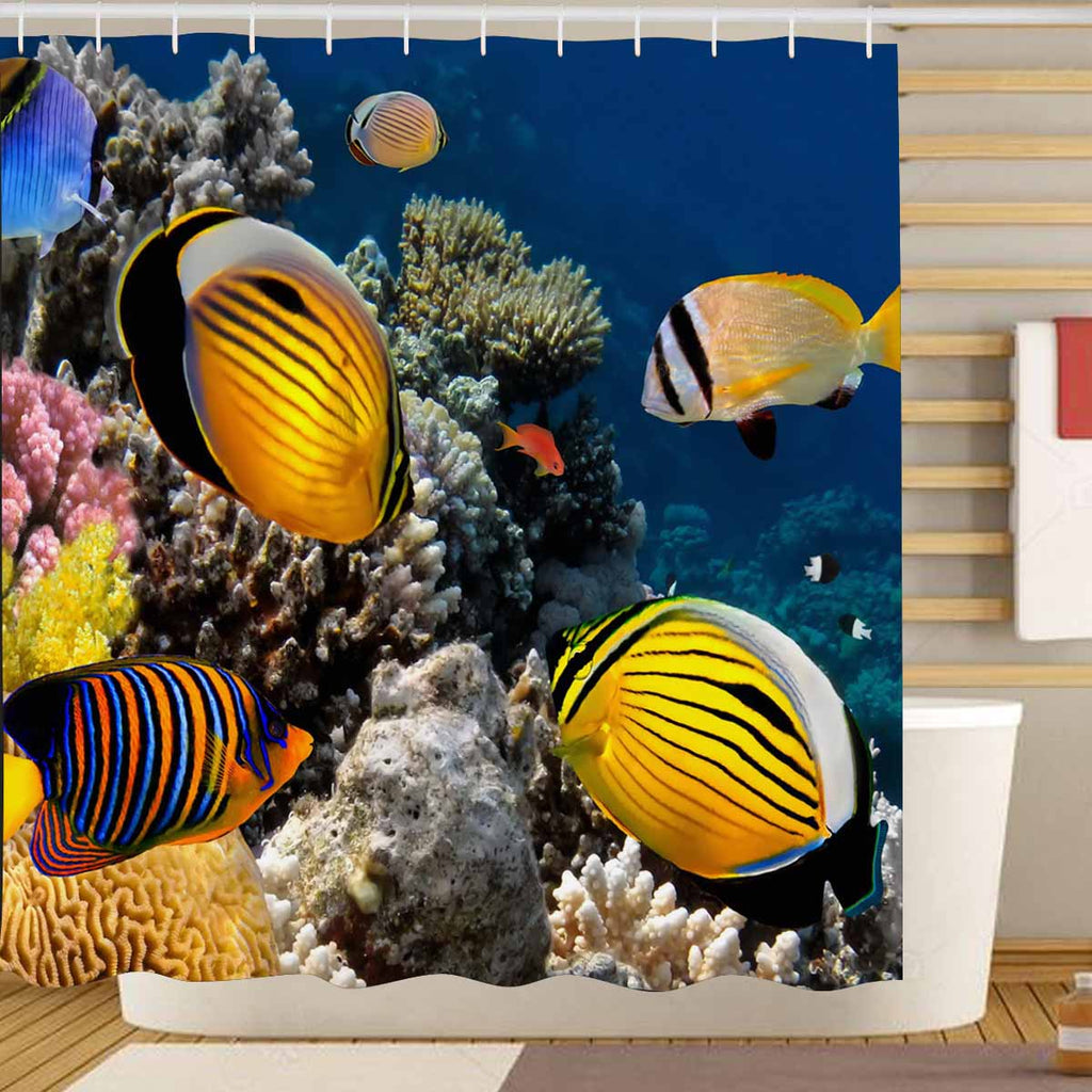 Seaworld Shower Curtains print with Polyp Butterflyfish