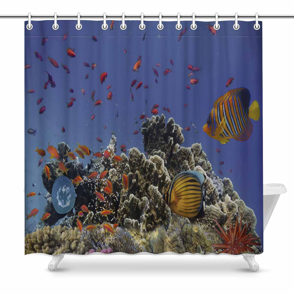 Seaworld Shower Curtains print with Ropical Fish on Coral Reef