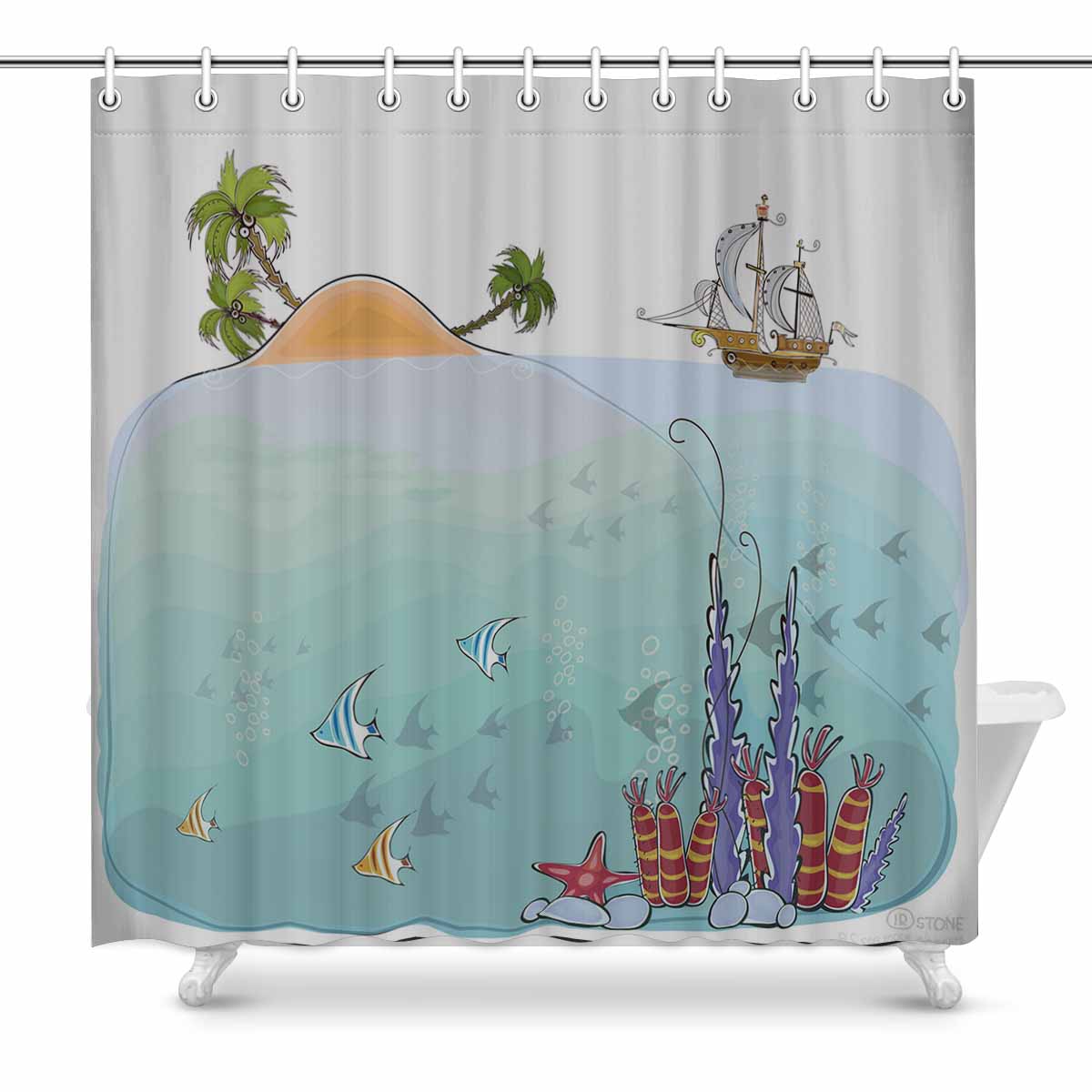 Seaworld themed print on shower curtains for bathroom, create a brilliant atmosphere in your bathroom, include a selection of different stylish and custom-made designs for your bath decoration.