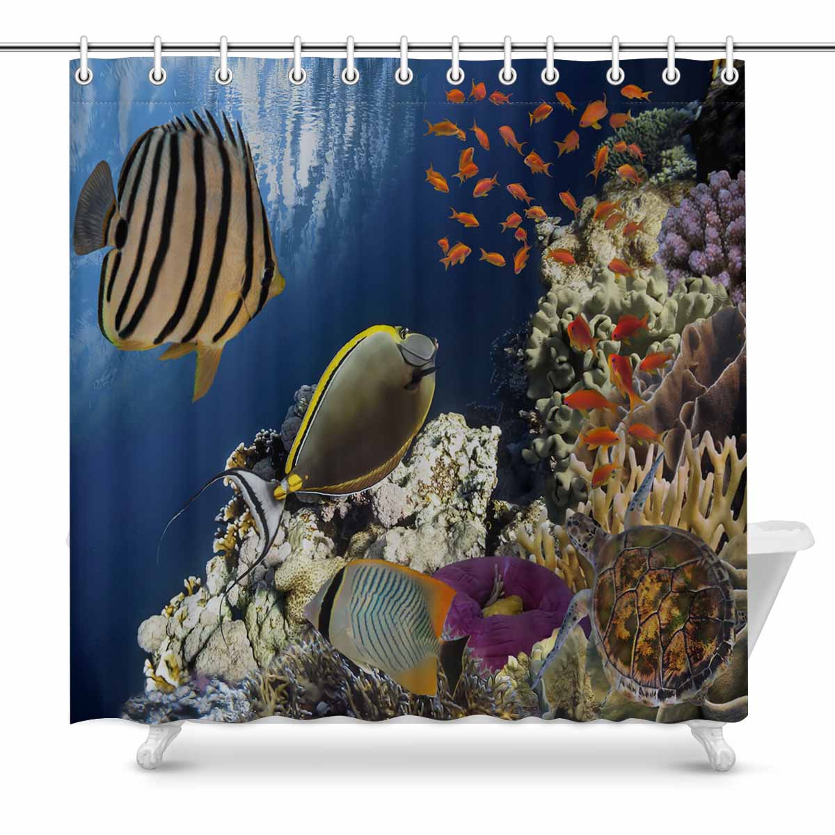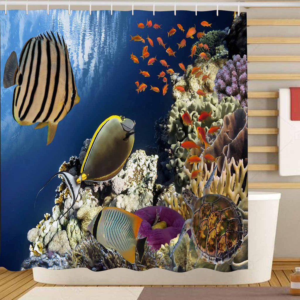 Seaworld themed print on shower curtains for bathroom, create a brilliant atmosphere in your bathroom, include a selection of different stylish and custom-made designs for your bath decoration.