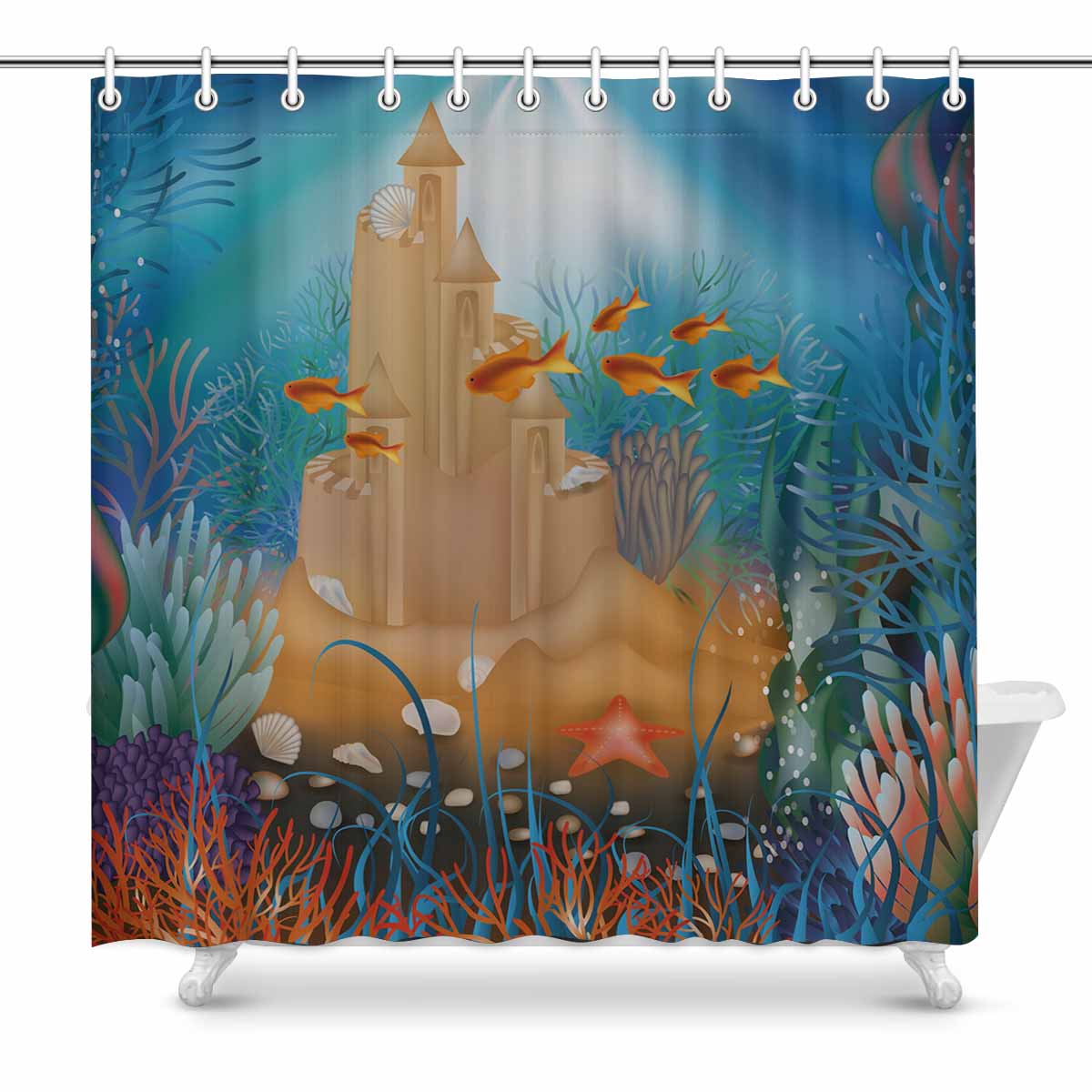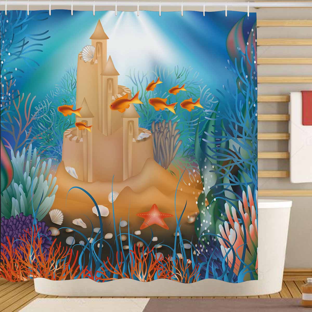 Seaworld themed print on shower curtains for bathroom, create a brilliant atmosphere in your bathroom, include a selection of different stylish and custom-made designs for your bath decoration.