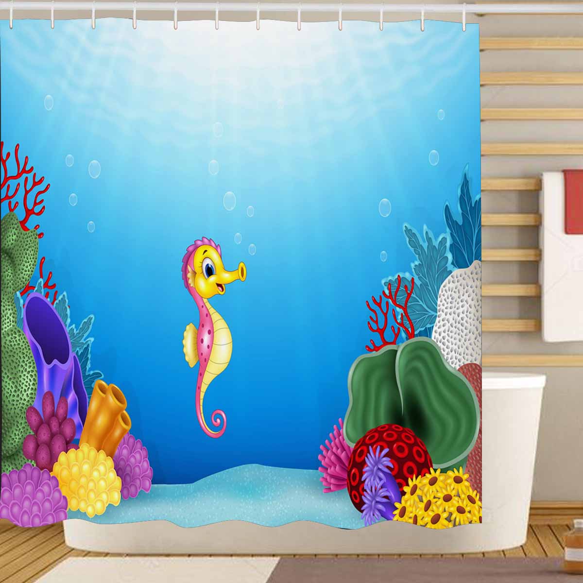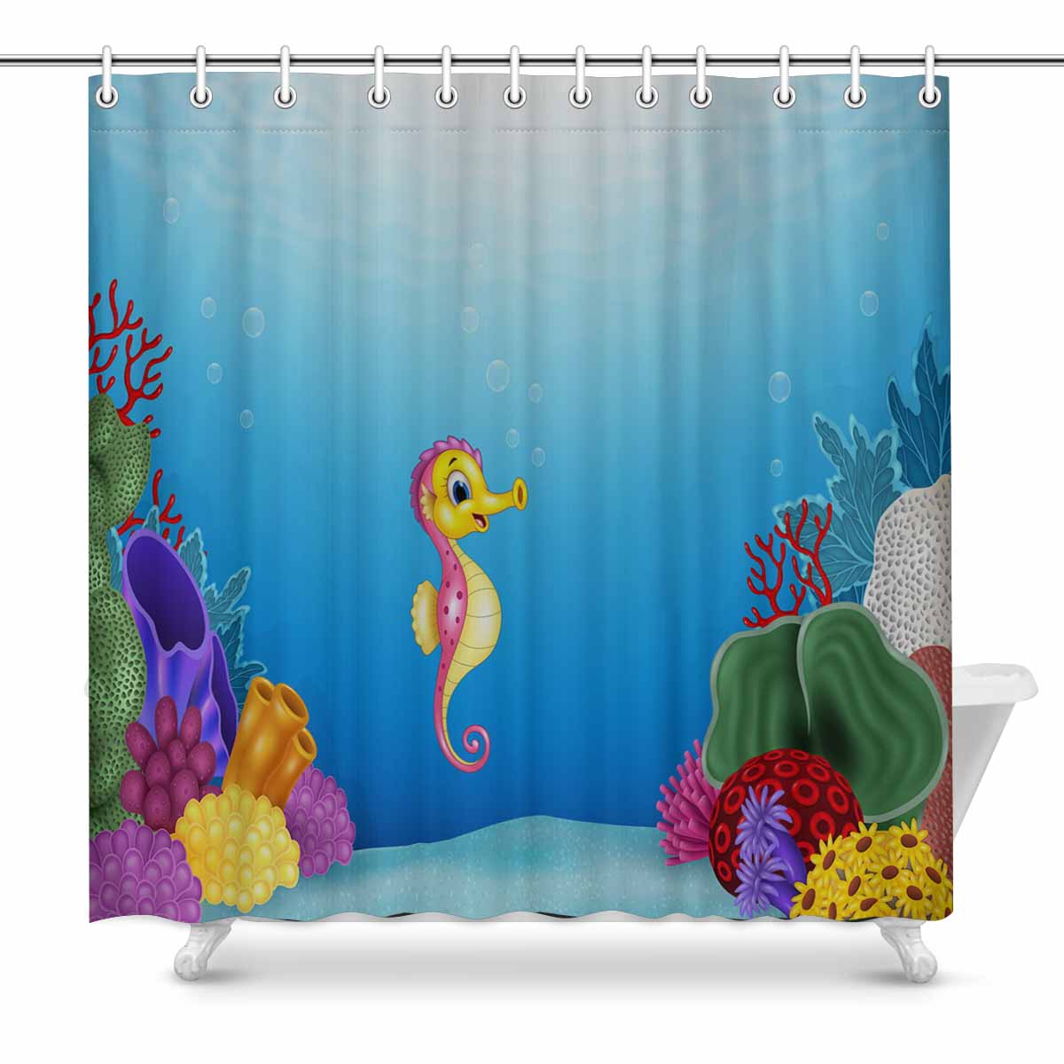 Seaworld Shower Curtains print with Seahorses with beautiful underwater world