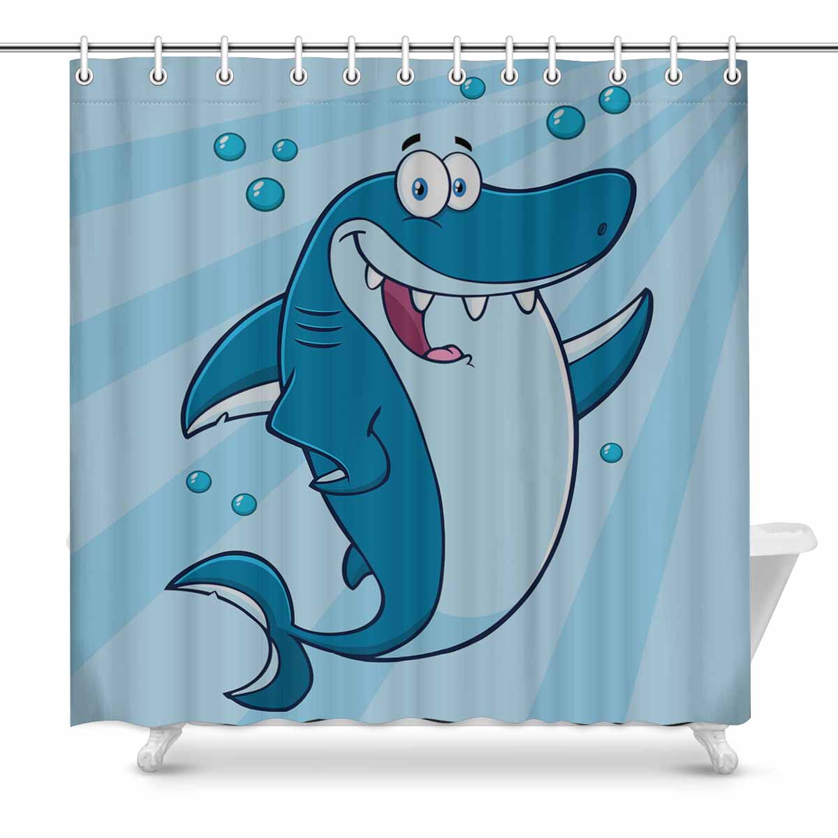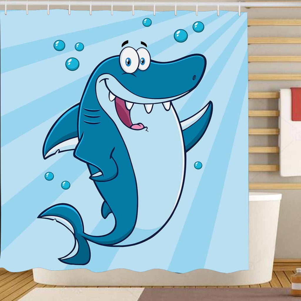 Seaworld Shower Curtains print with Shark Cartoon Mascot