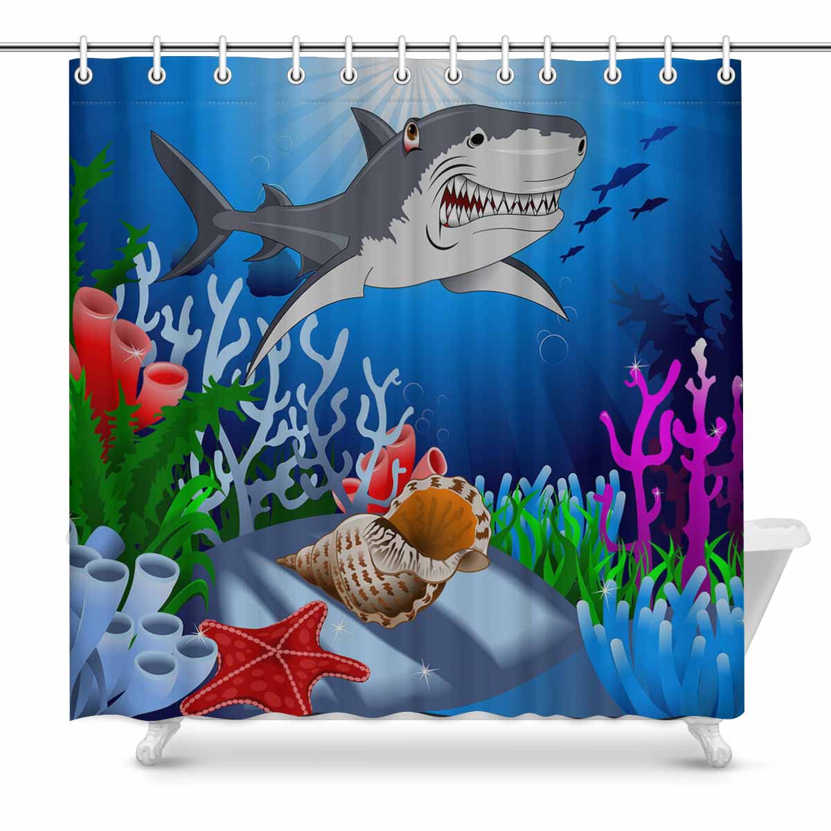 Seaworld themed print on shower curtains for bathroom, create a brilliant atmosphere in your bathroom, include a selection of different stylish and custom-made designs for your bath decoration.