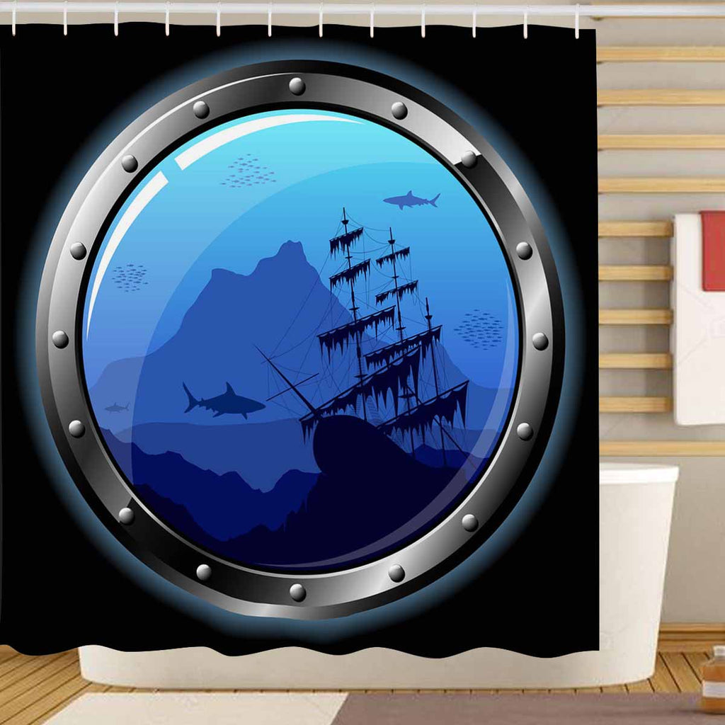 Seaworld Shower Curtains print with ship porthole