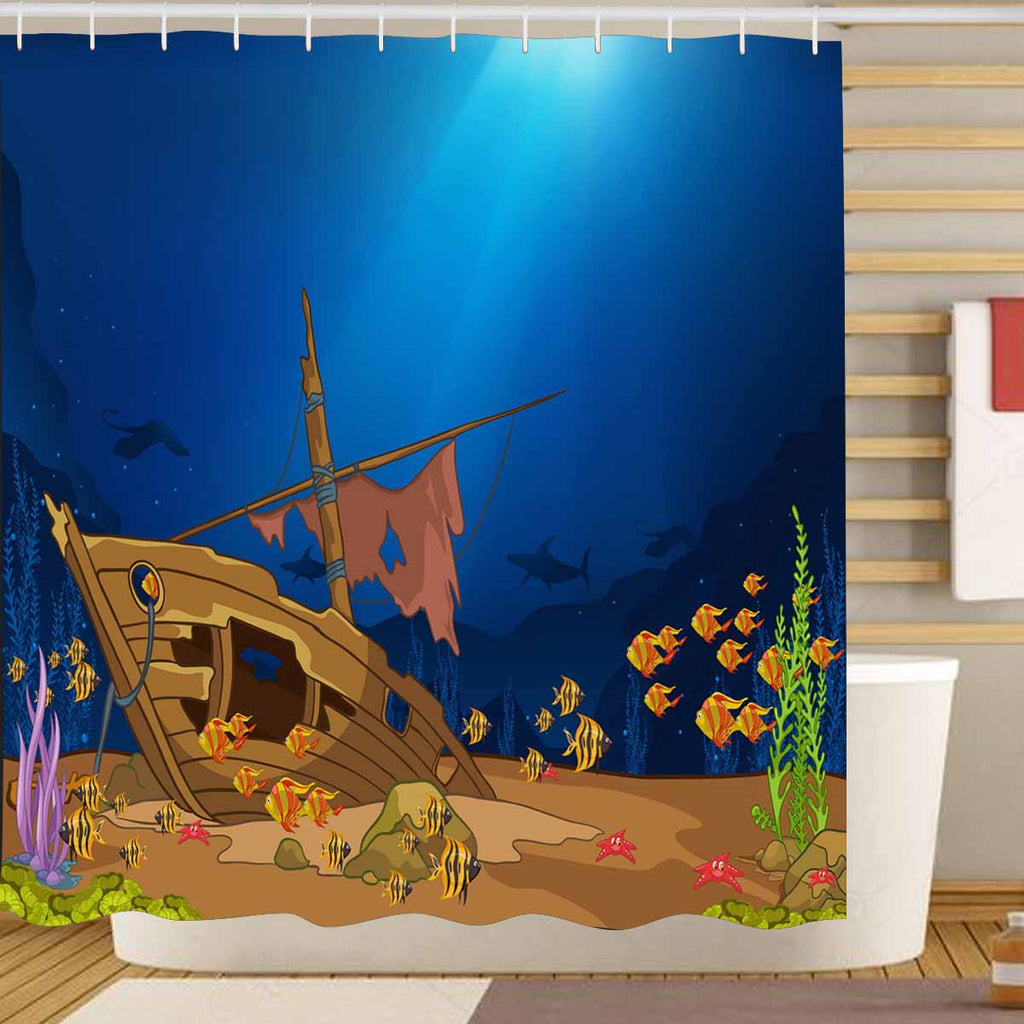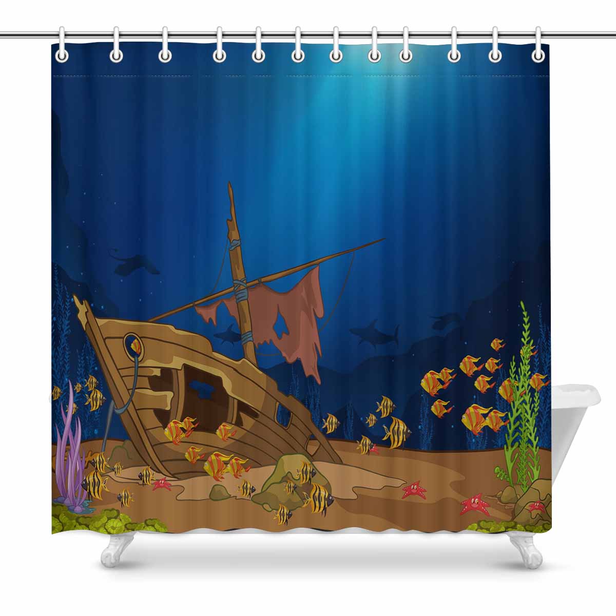 Seaworld themed print on shower curtains for bathroom, create a brilliant atmosphere in your bathroom, include a selection of different stylish and custom-made designs for your bath decoration.