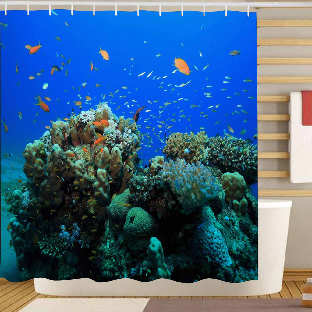 Seaworld Shower Curtains print with Tropical coral reef