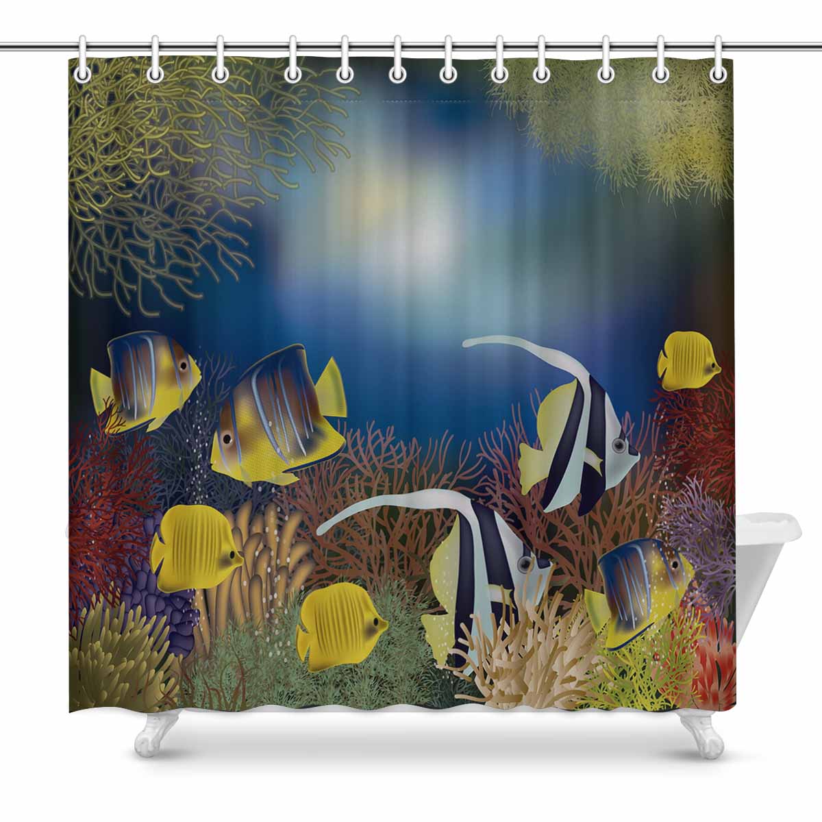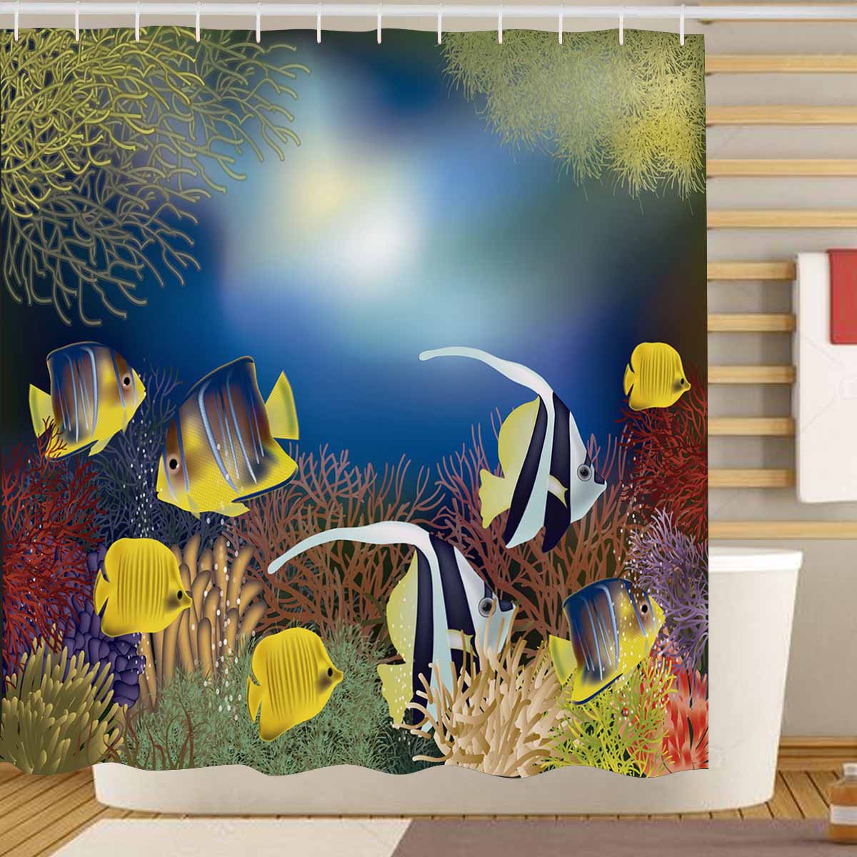 Seaworld themed print on shower curtains for bathroom, create a brilliant atmosphere in your bathroom, include a selection of different stylish and custom-made designs for your bath decoration.