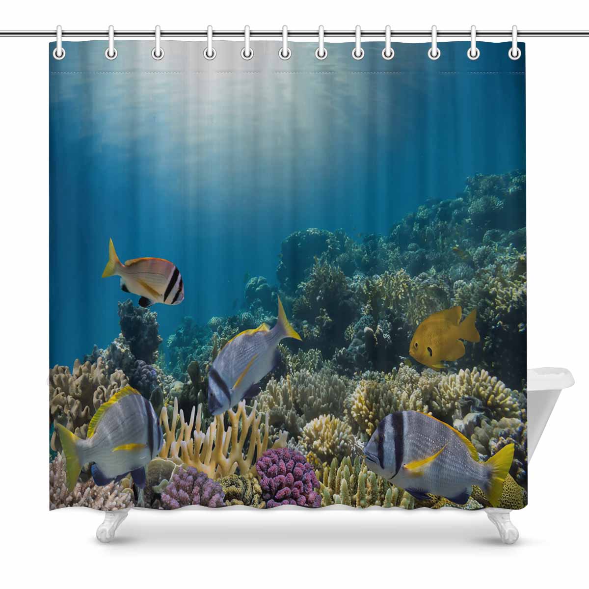Seaworld Shower Curtains print with Tropical Fish on coral reef