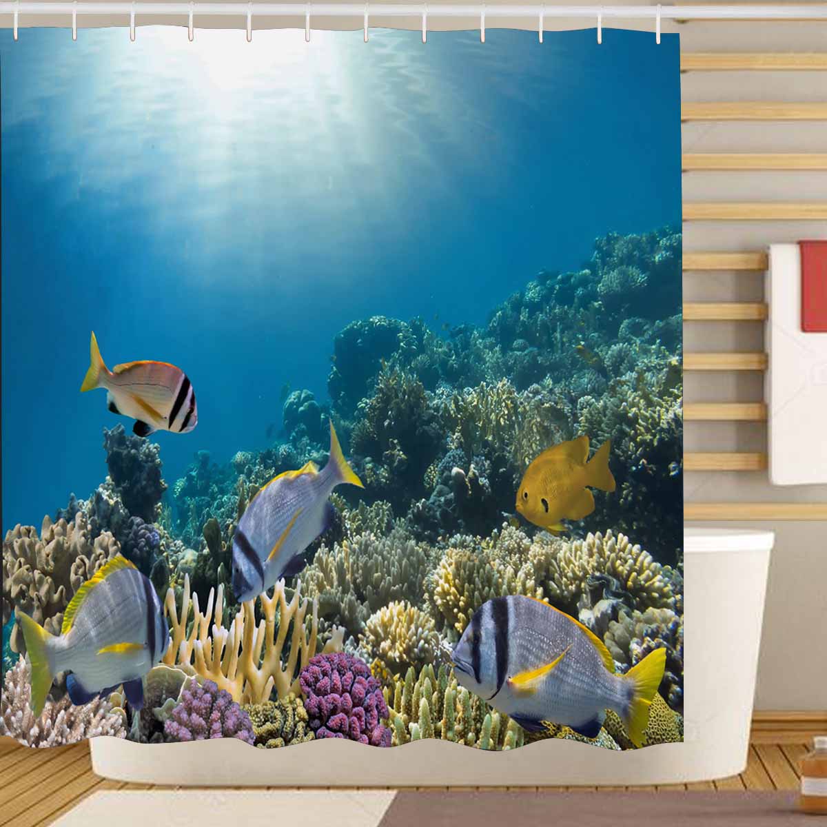 Seaworld themed print on shower curtains for bathroom, create a brilliant atmosphere in your bathroom, include a selection of different stylish and custom-made designs for your bath decoration.